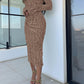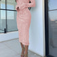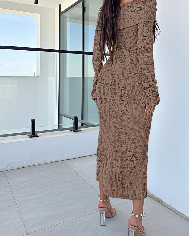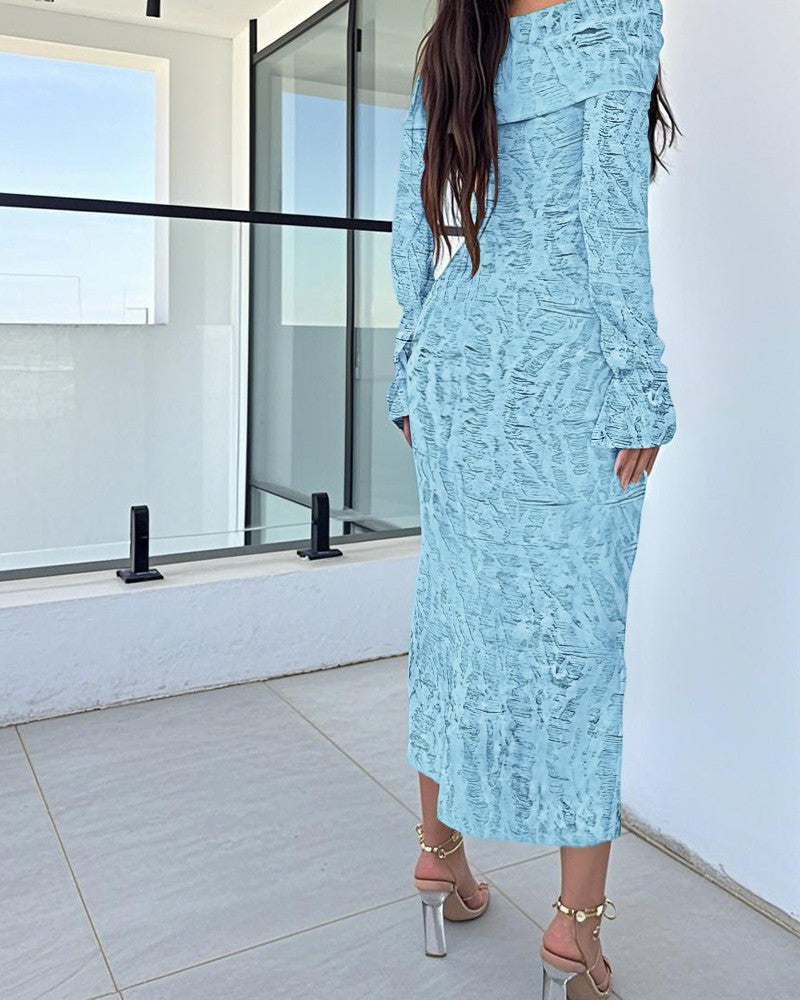 Off Shoulder Long Sleeve Hollow Out Knit Dress Casual Slim Fit Midi Sweater Dress