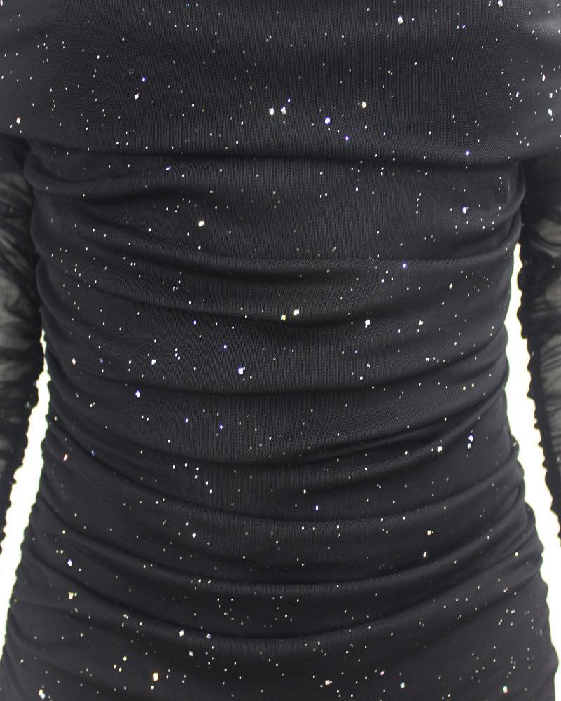 Off Shoulder Ruched Glitter Party Dress