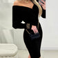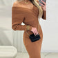 Off Shoulder Slim Fit Knit Long Sleeve Sweater Dress