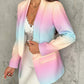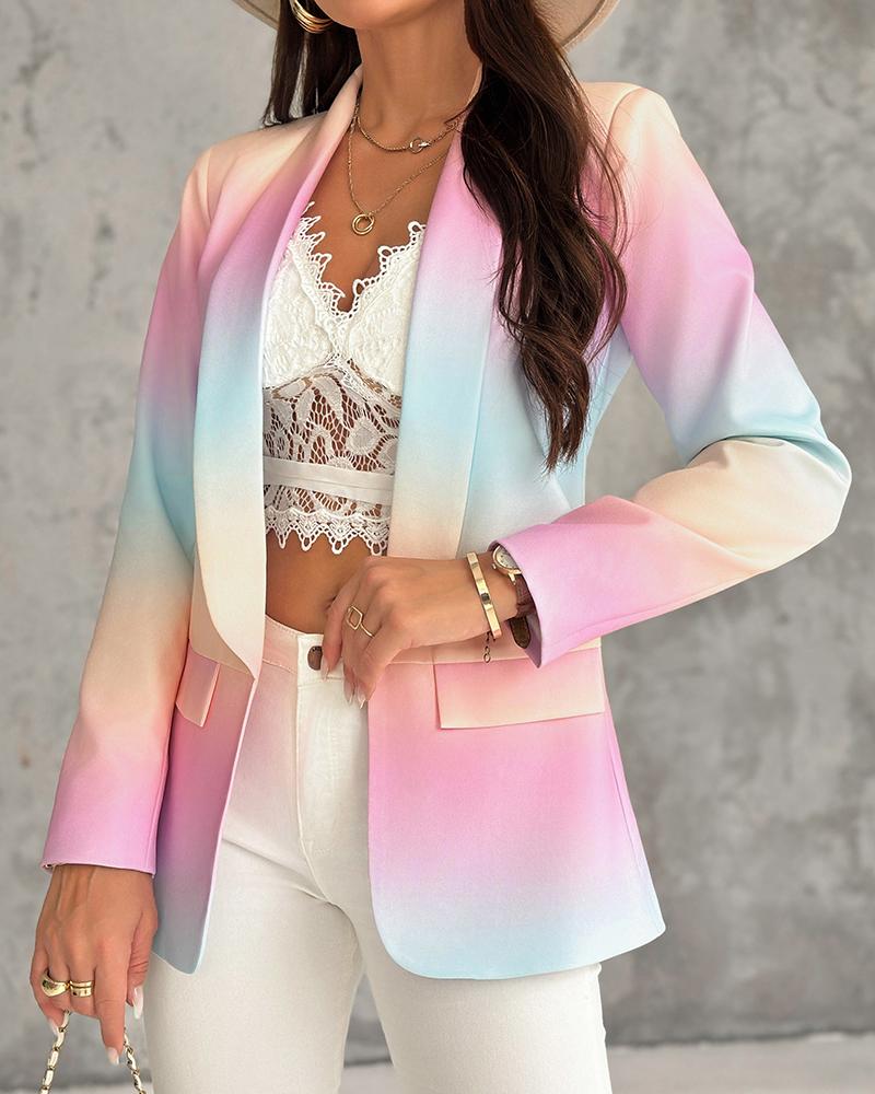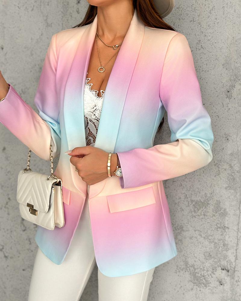 Ombre Lapel Neck Long Sleeve Flap Detail Blazer