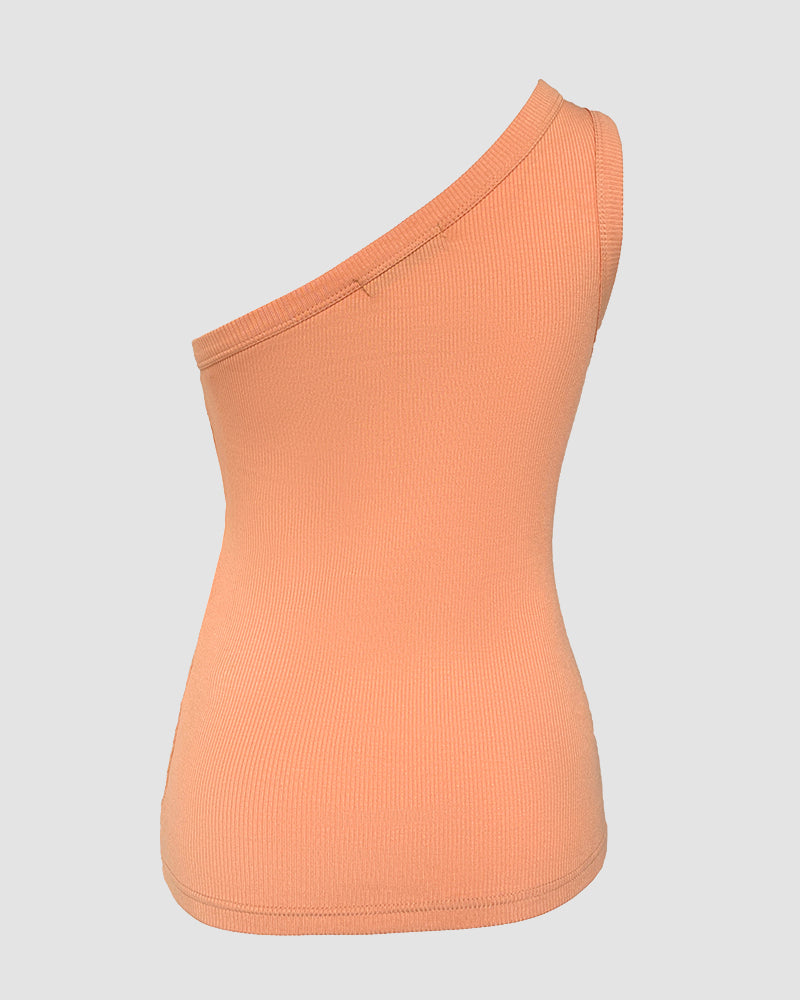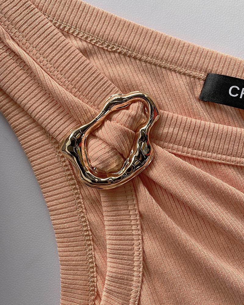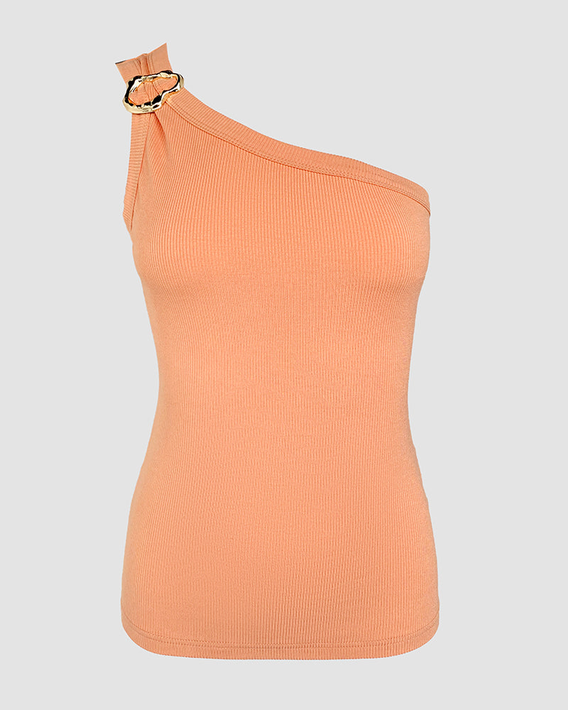 One Shoulder Goldren Decor Casual Slim Fit Ribbed Top