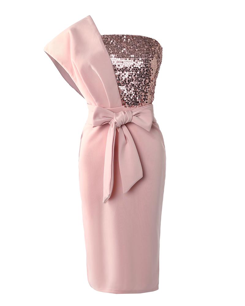 One Shoulder Slit Ruffle Hem Sequins Party Dress