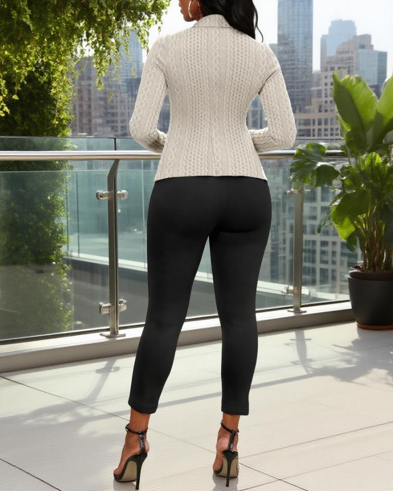 Open Front Long Sleeve Cinched Waist Kint Jacquard Coat