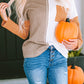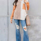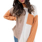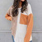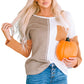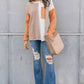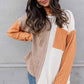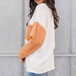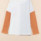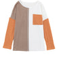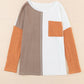 Orange Long Sleeve Colorblock Chest Pocket Textured Knit Top