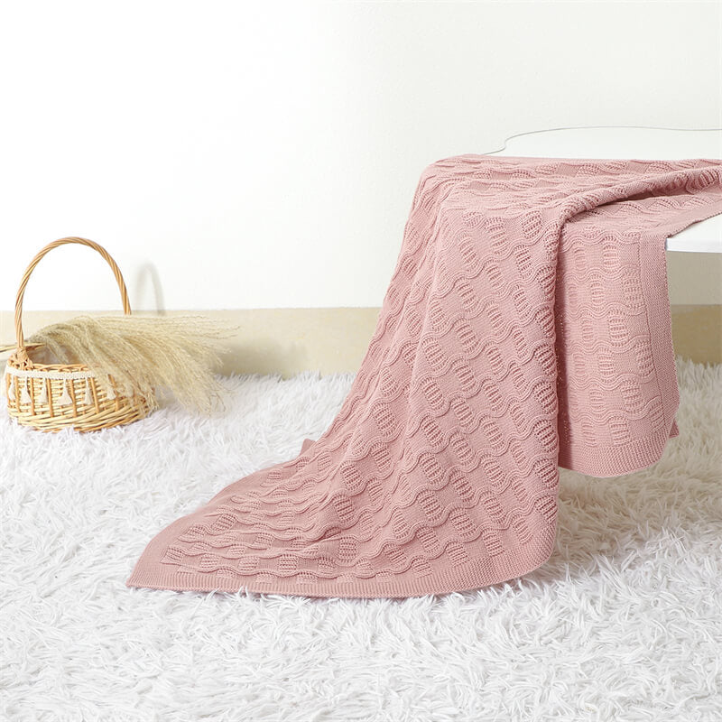 Organic Cotton Knit Soft Warm Cozy Unisex Receiving Swaddler Cuddle Stroller Crib Quilt Blanket A037
