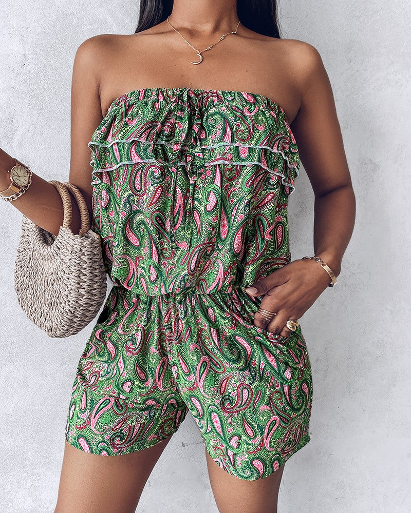 Paisley Print Ruched Pocket Design Bandeau Romper
