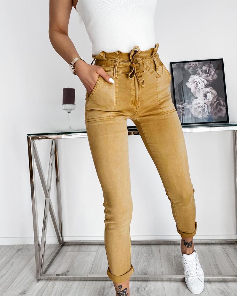 Paper Bag Waist Pocket Detail Self Tie Skinny Pants