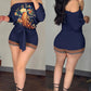 Peacock Floral Print Tied Detail Romper