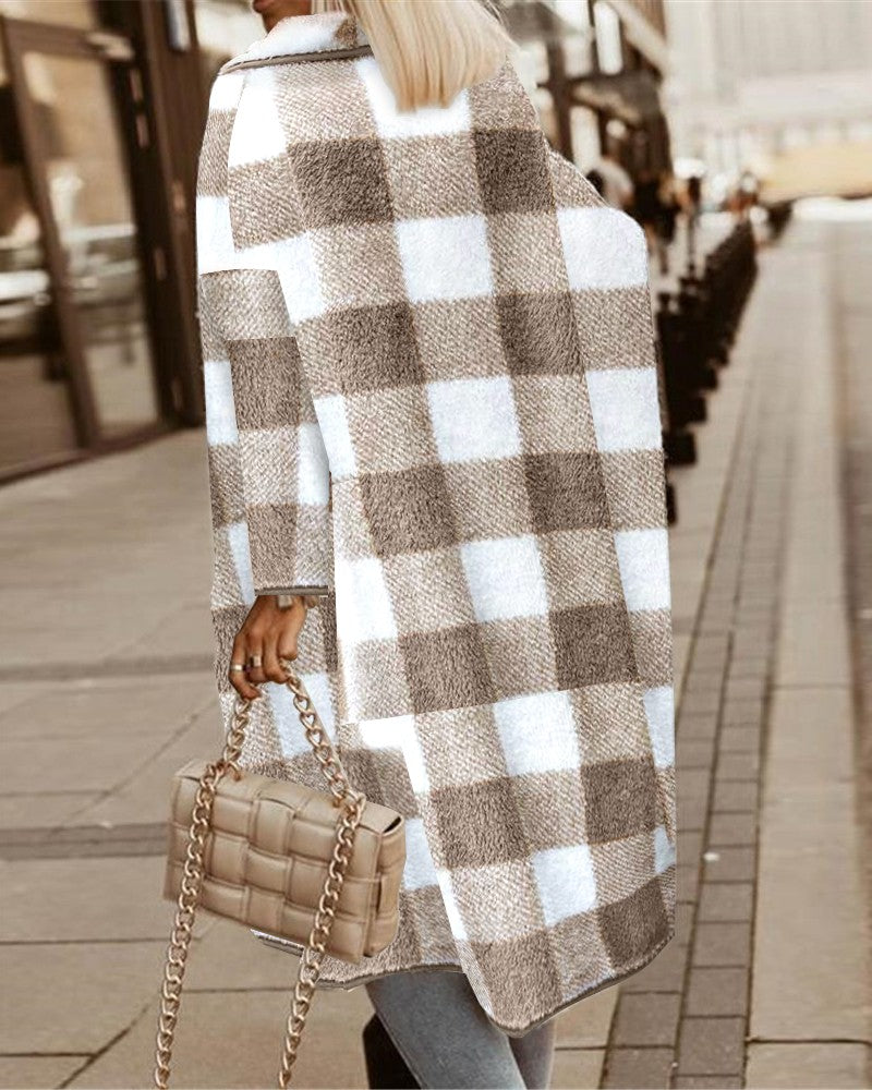 Stay warm in style with this Plaid Pattern Fuzzy Longline Coat. Its soft, fuzzy fabric is perfect for freezing temperatures, while the plaid pattern adds a touch of flair. This coat is sure to keep you cozy and fashionable through the cold season!