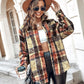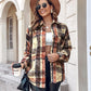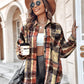 Plaid Pattern Long Sleeve Shacket Distressed Button Down Shirt