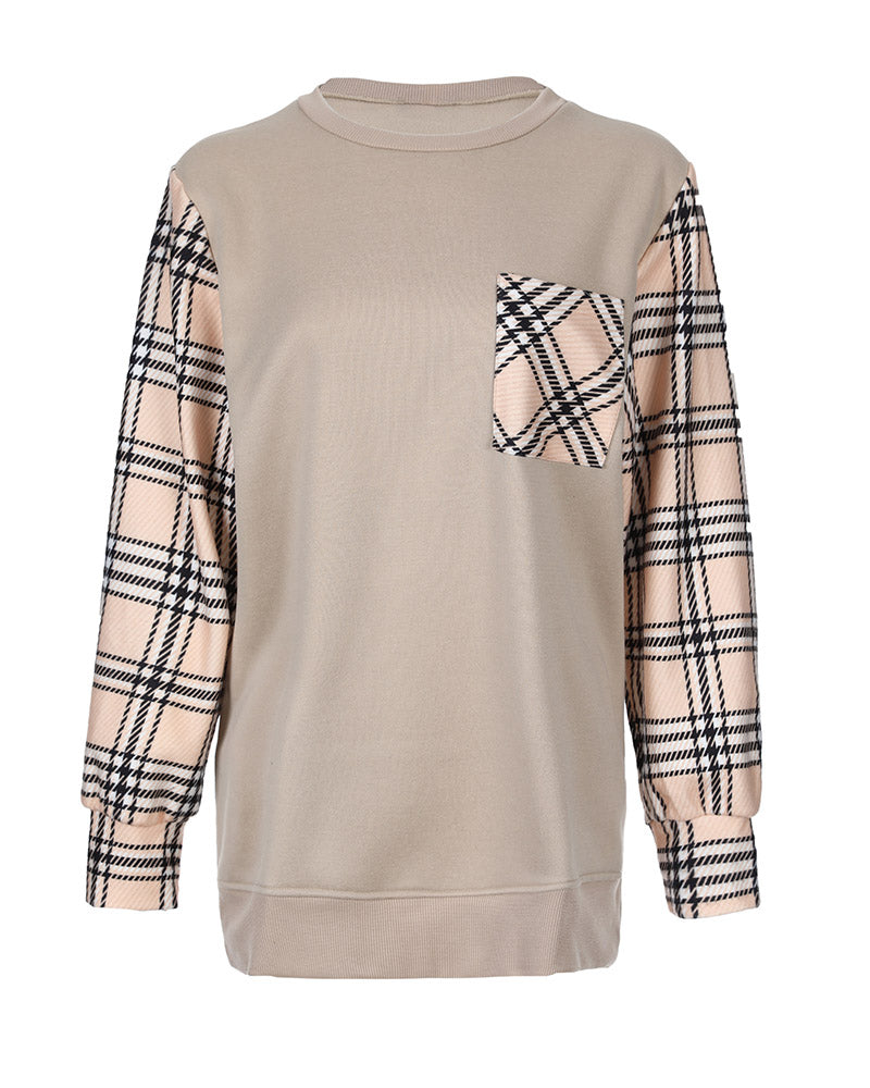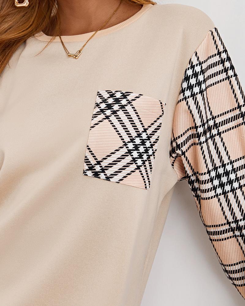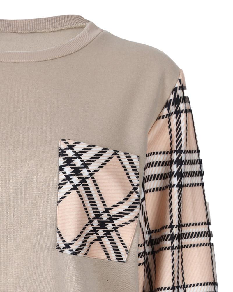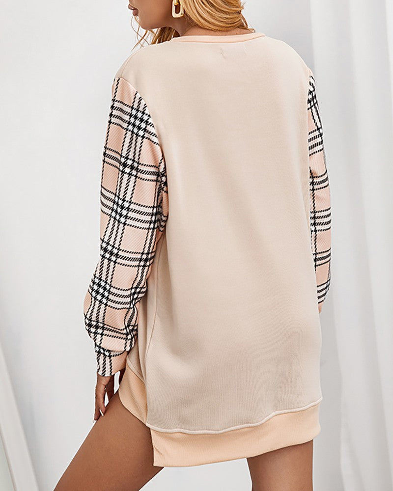 Plaid Print Colorblock Long Sleeve Sweatshirt Dress