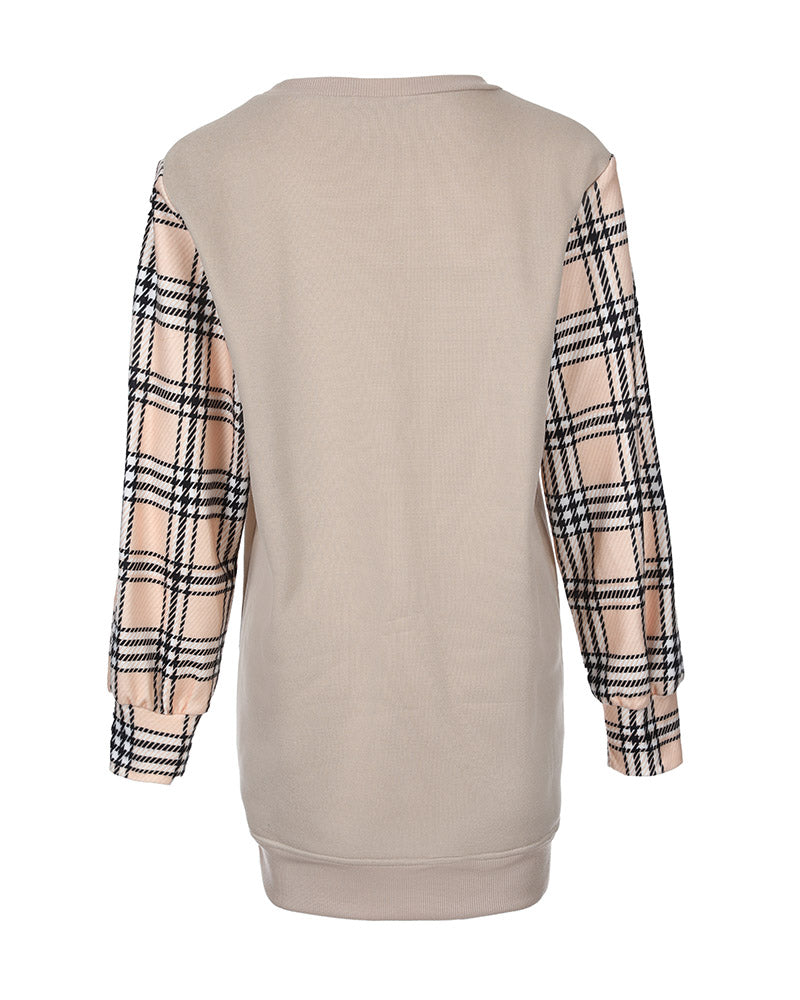 Plaid Print Colorblock Long Sleeve Sweatshirt Dress