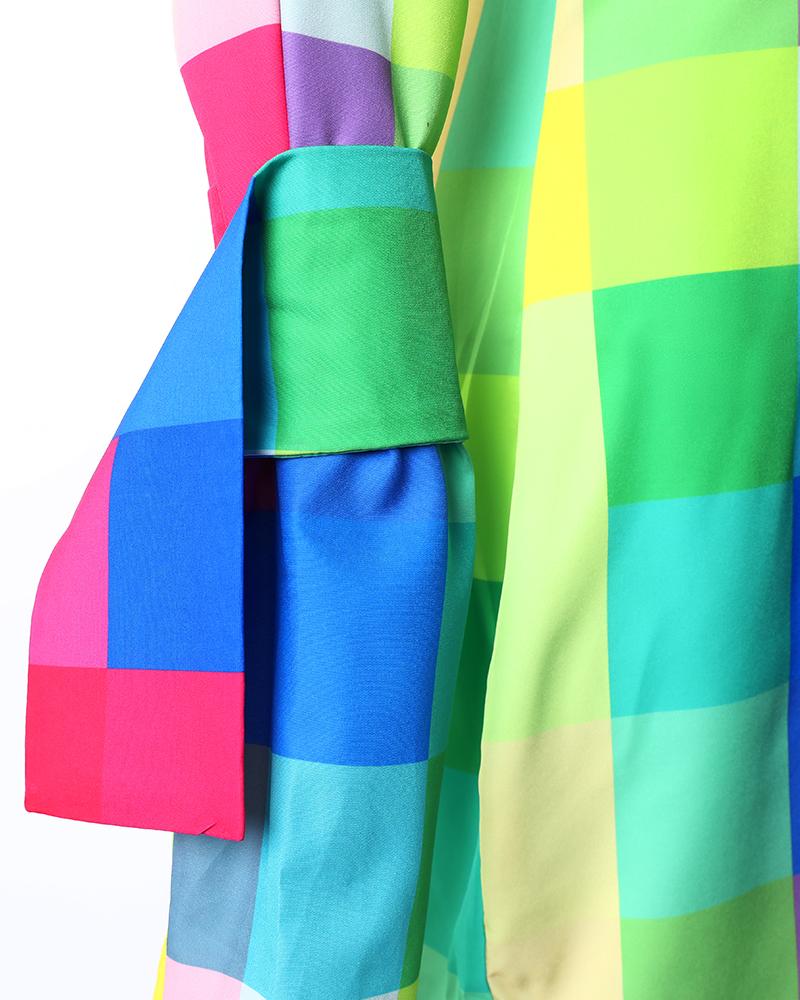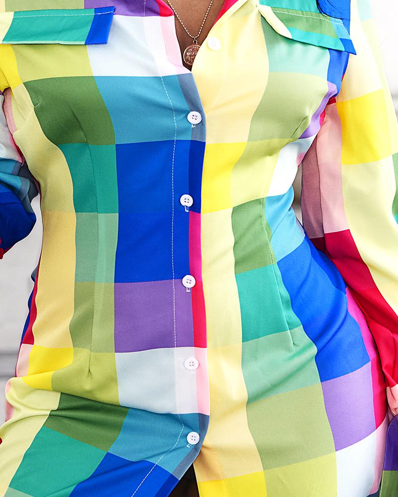 Plaid Print Long Sleeve Button Down Shirt Dress