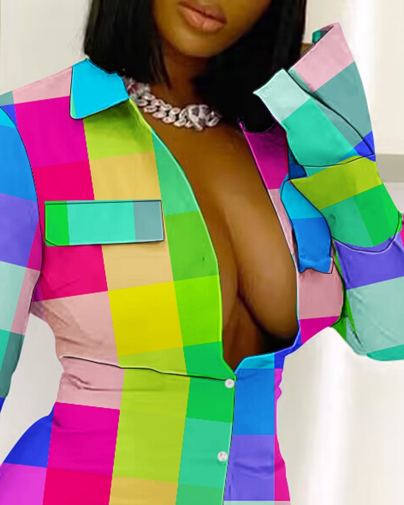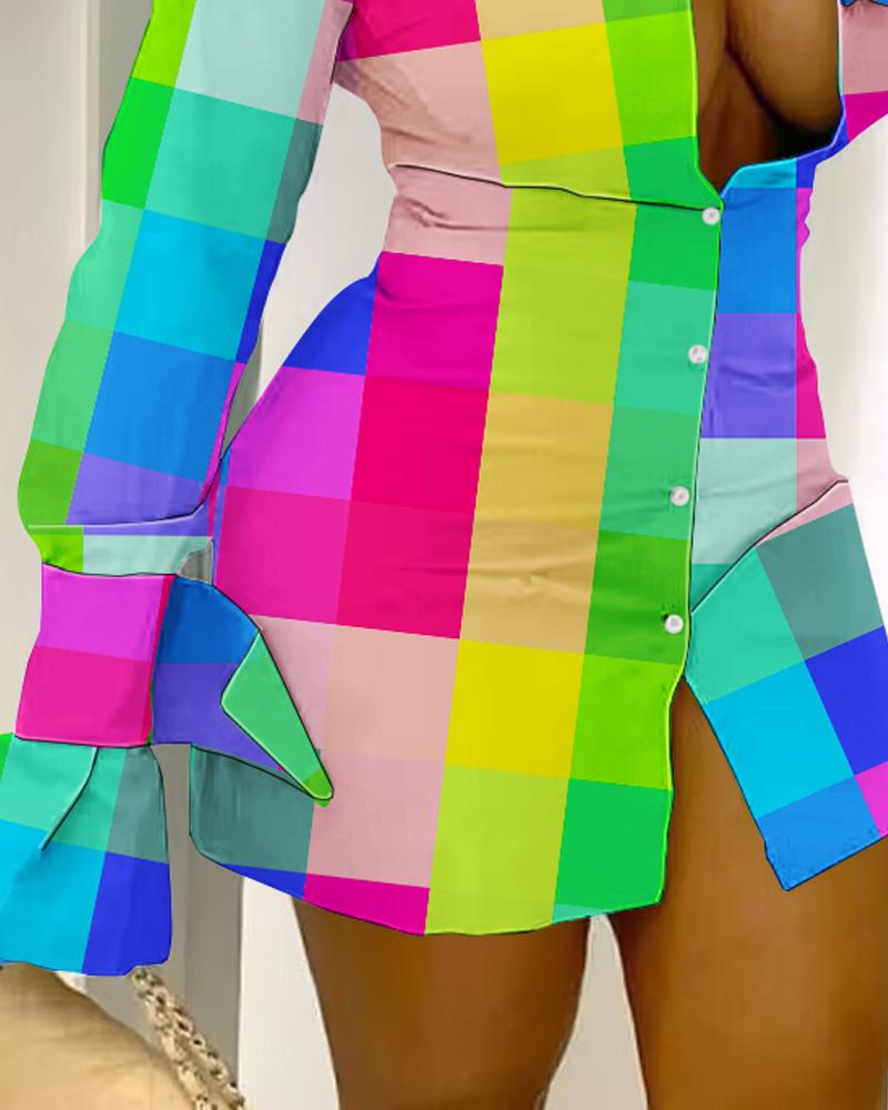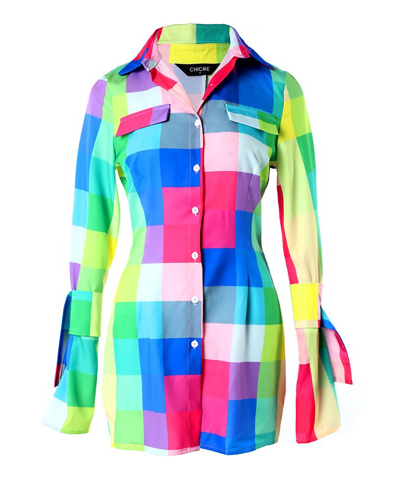 Plaid Print Long Sleeve Button Down Shirt Dress