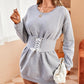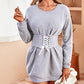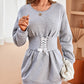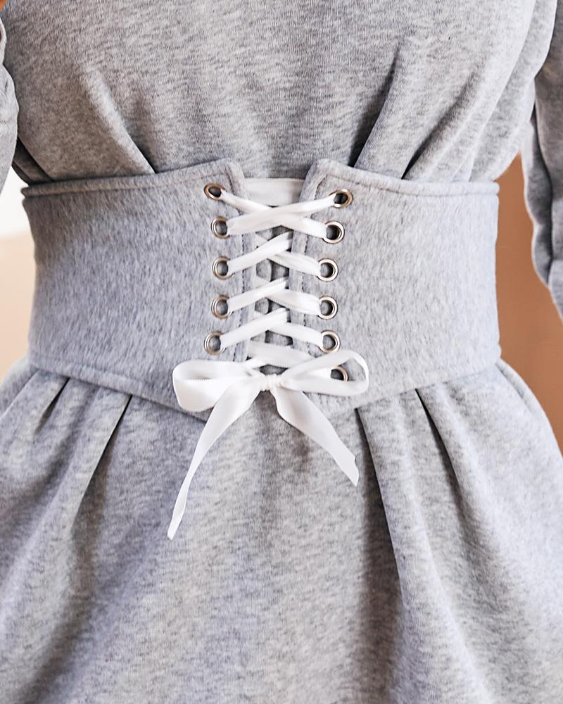 Plain Long Sleeve Eyelet Lace up Sweatshirt Dress