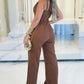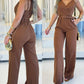 Plain Spaghetti Strap V Neck Back Zipper Jumpsuit Casual Pocket Design Romper