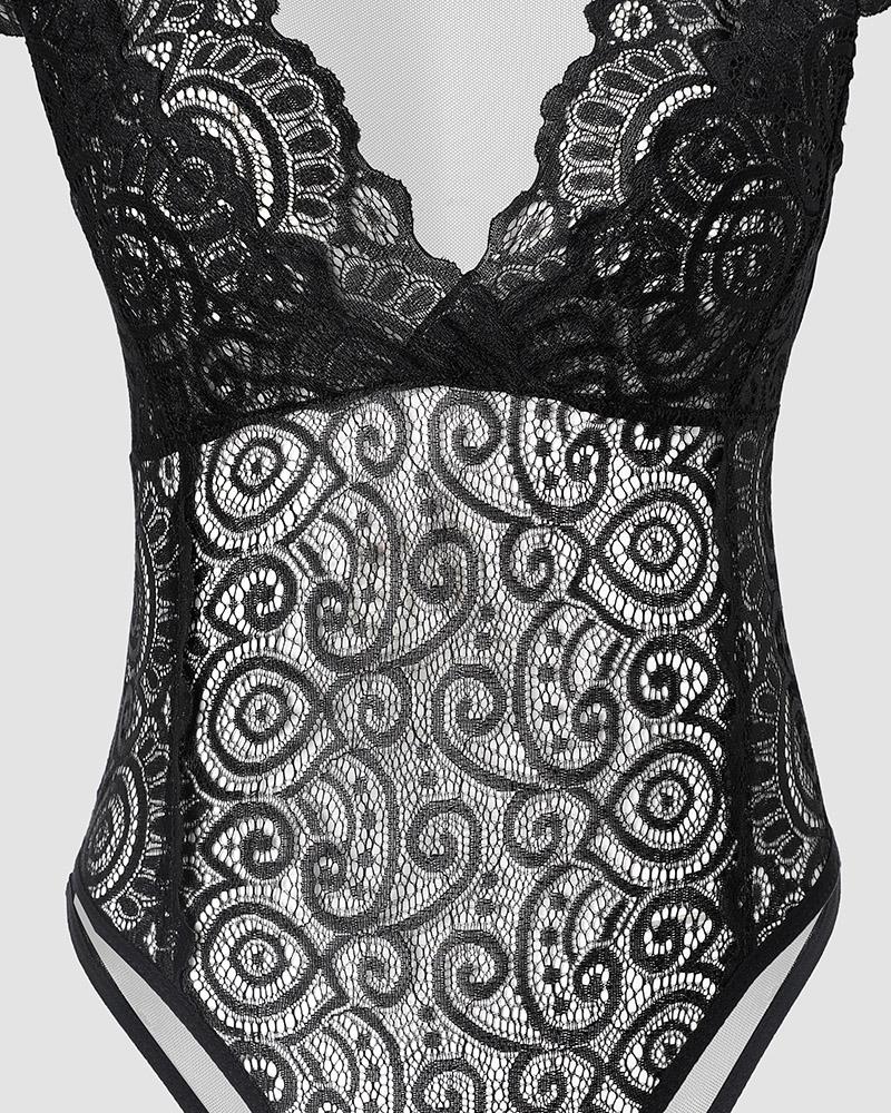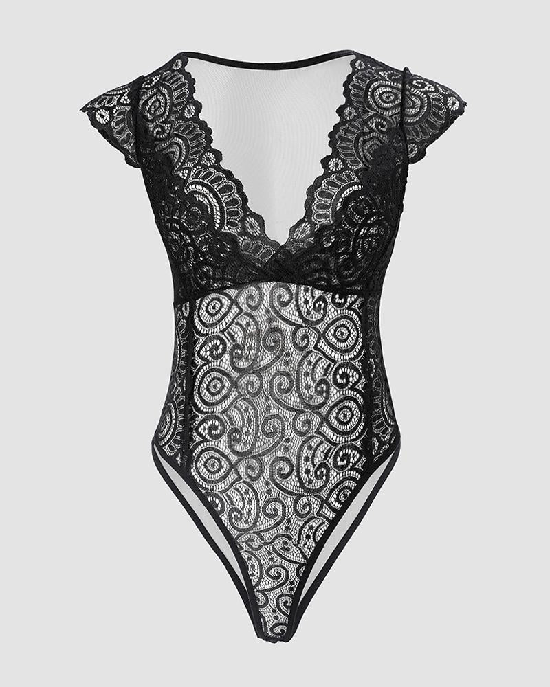 Plain V Neck Lace Skinny Bodysuit