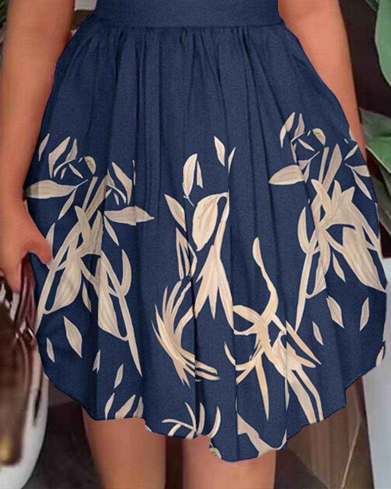 Plants Print Flutter Sleeve Pleated Casual Dress