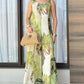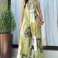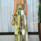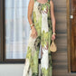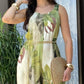 Plants Print Round Neck Sleeveless Jumpsuit Casual Wide Leg Romper