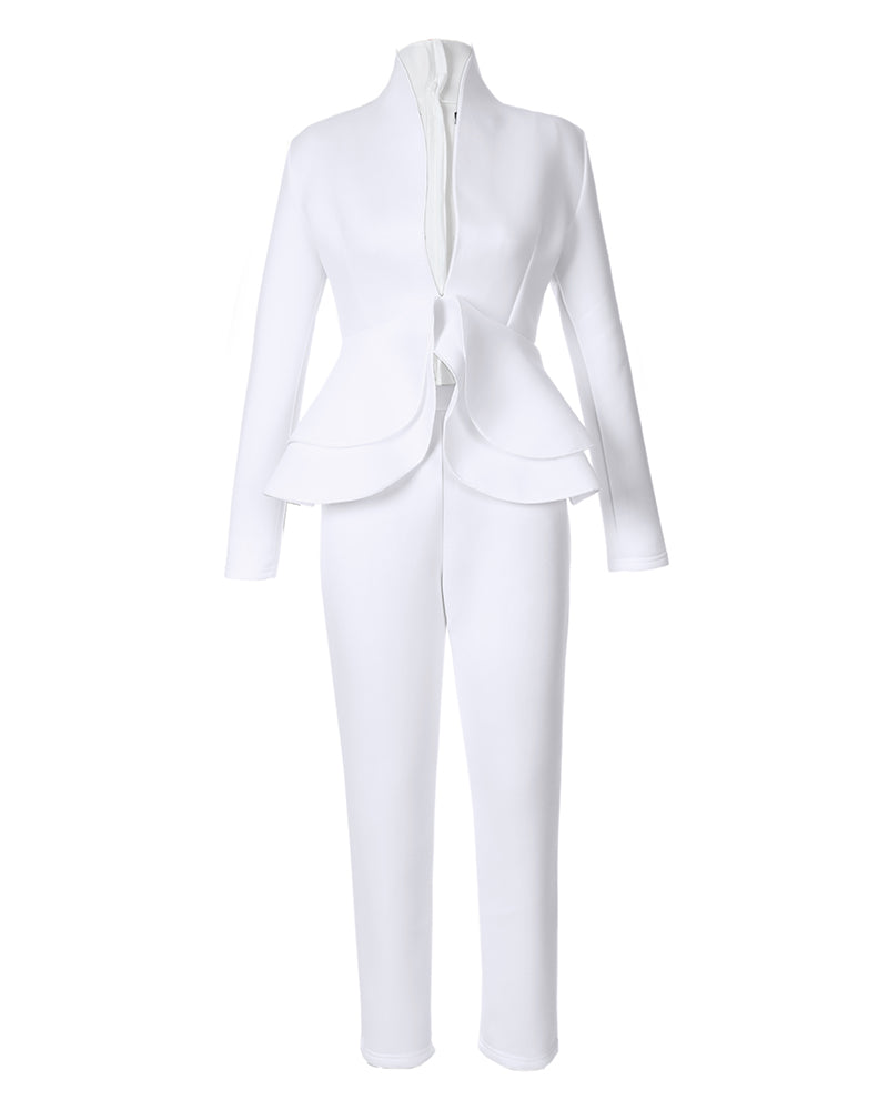 Plunge Layered Ruffles Top & Pencil Pant Sets