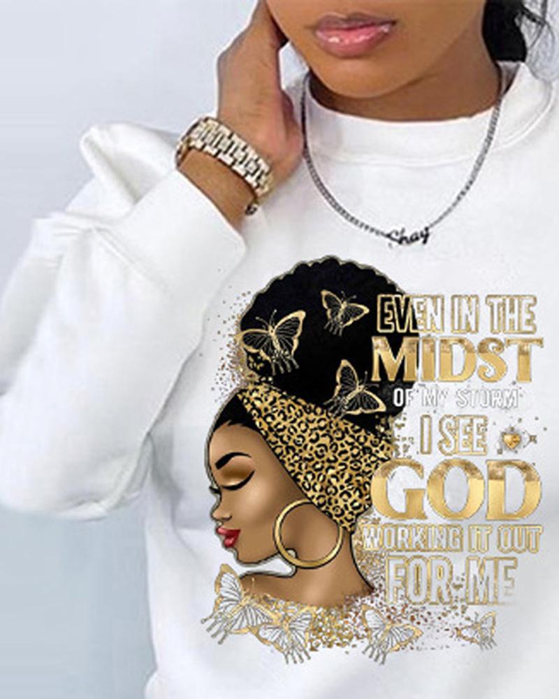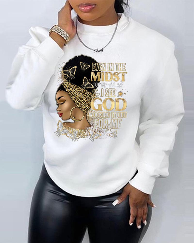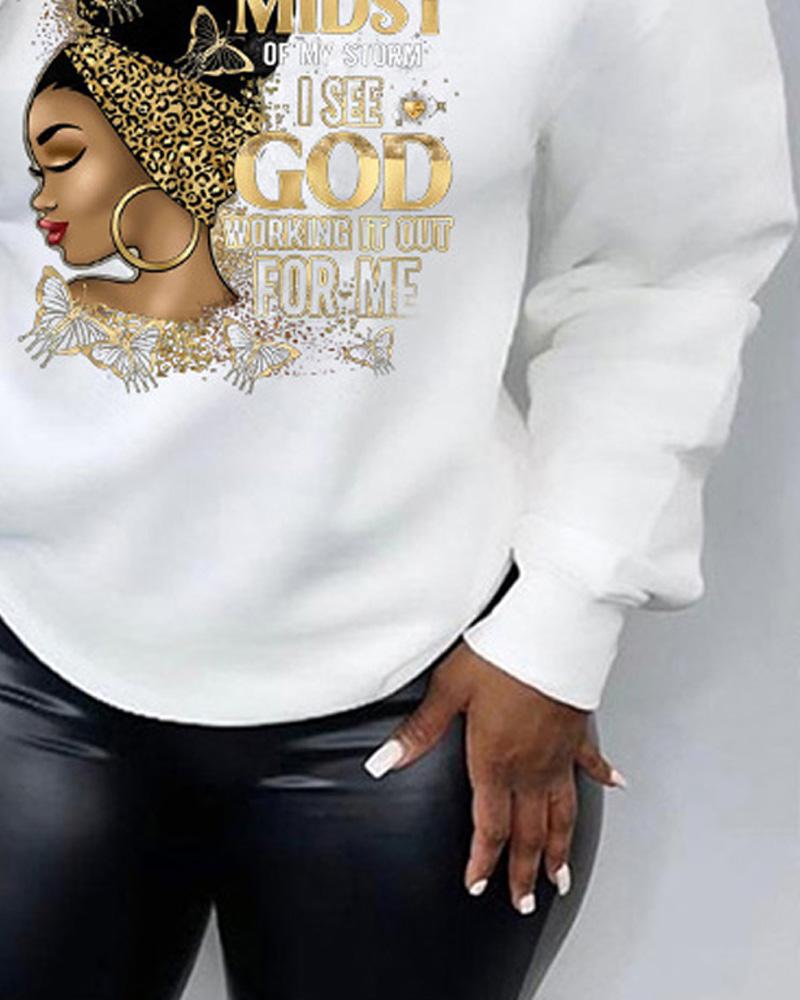 Plus Size Figure Letter Print Long Sleeve Sweatshirt