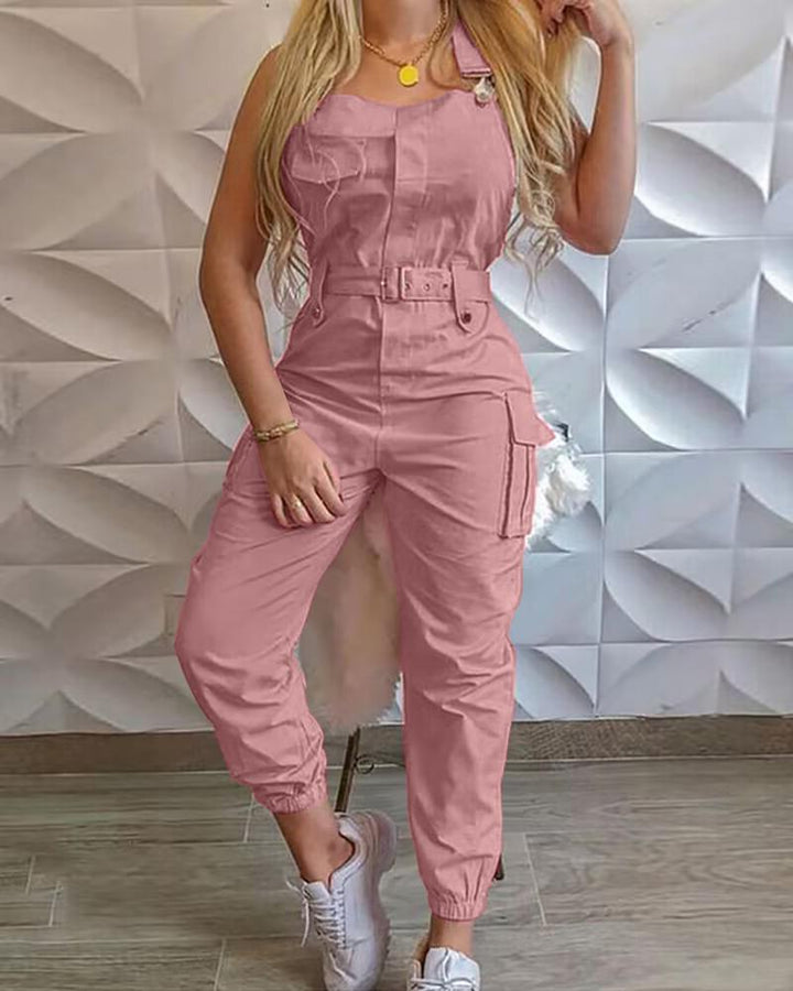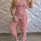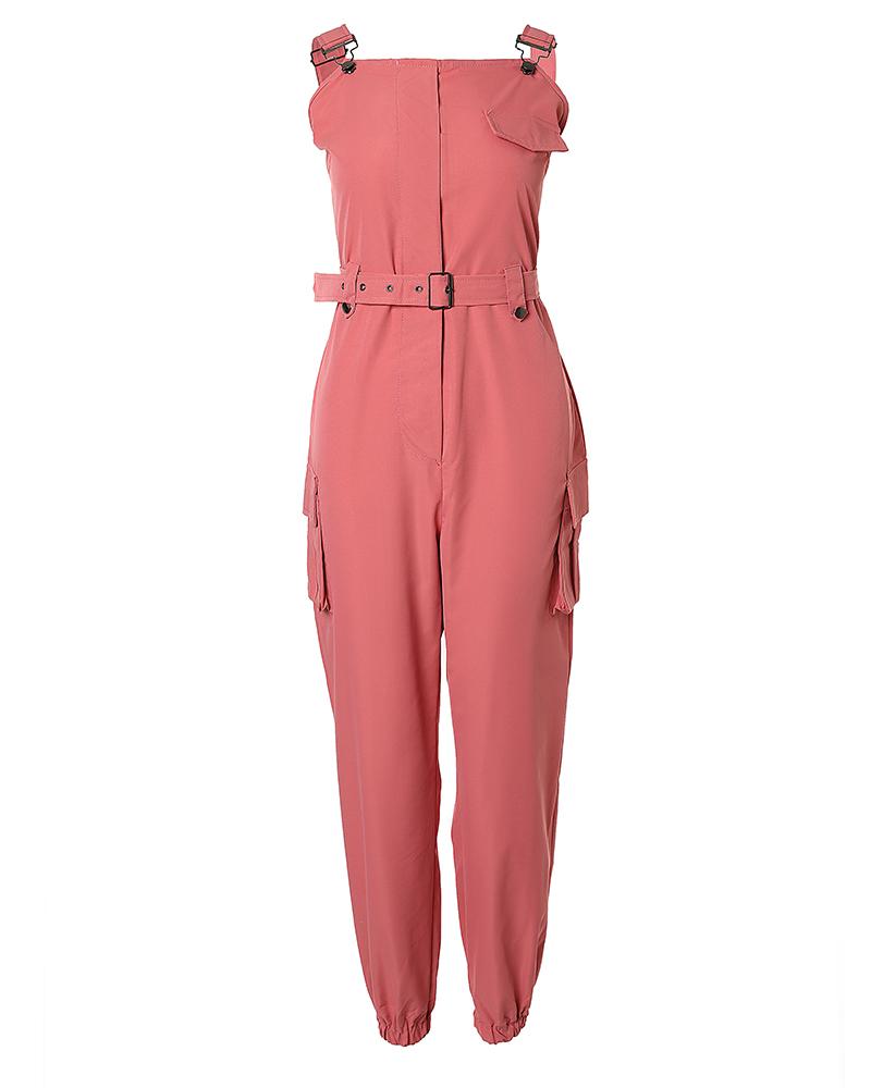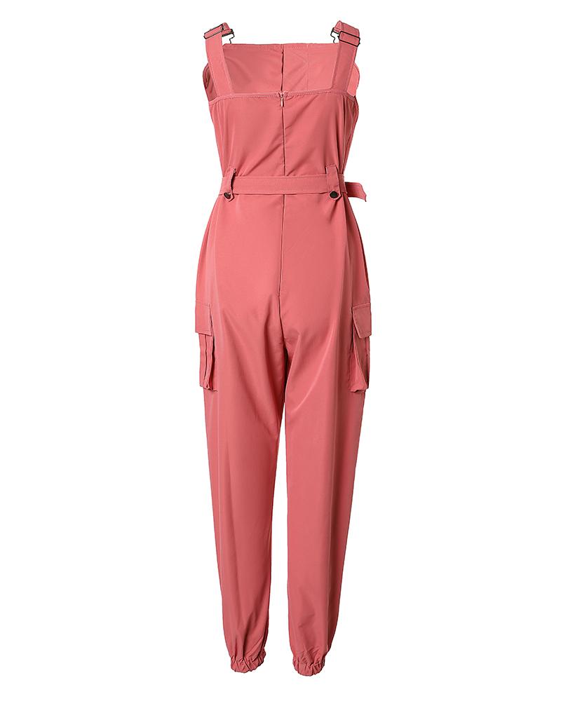 Pocket Buckle Design Cargo Suspender Jumpsuit