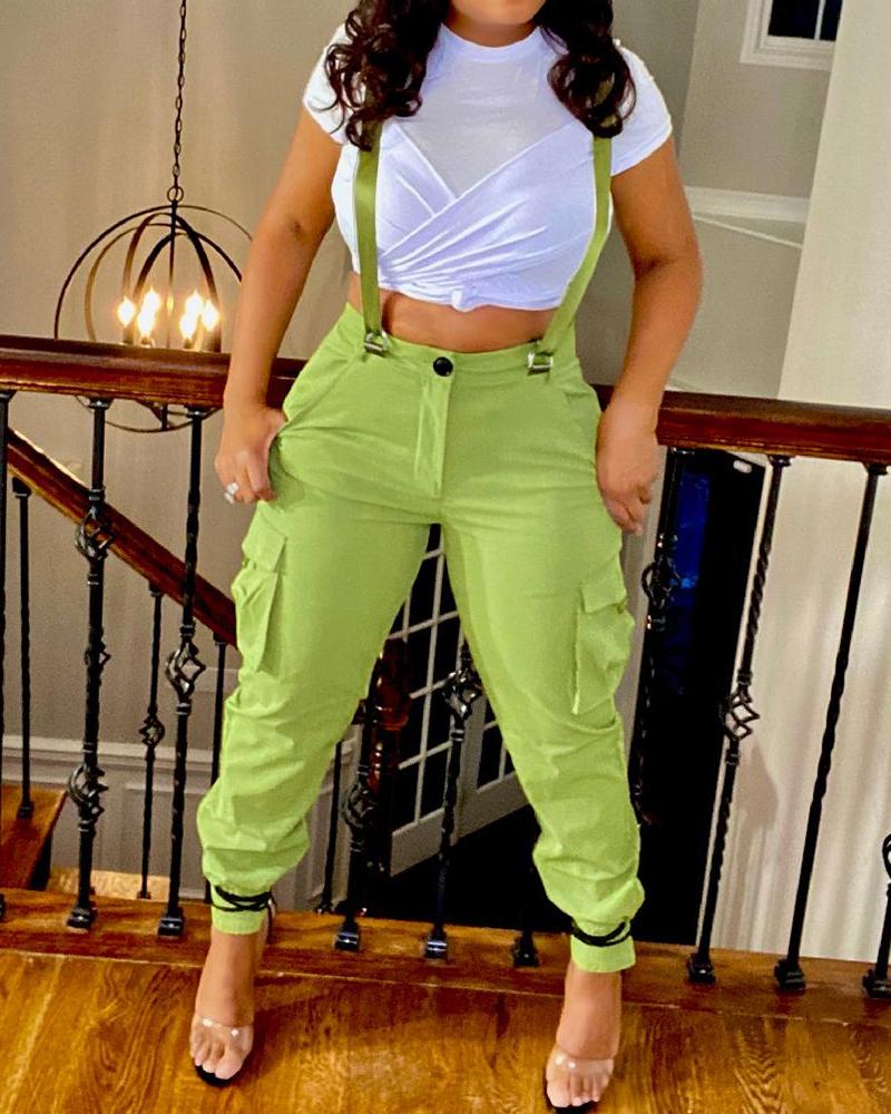 Pocket Design Cuffed Suspender Jumpsuit