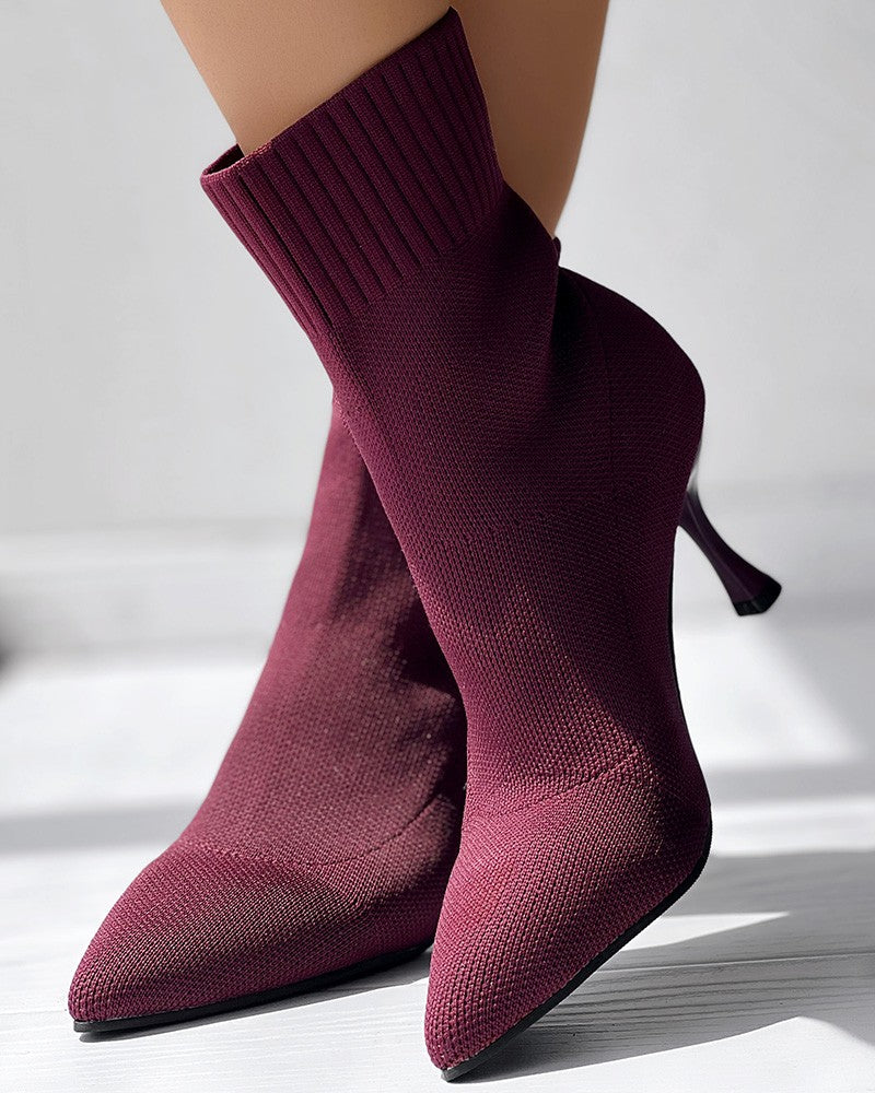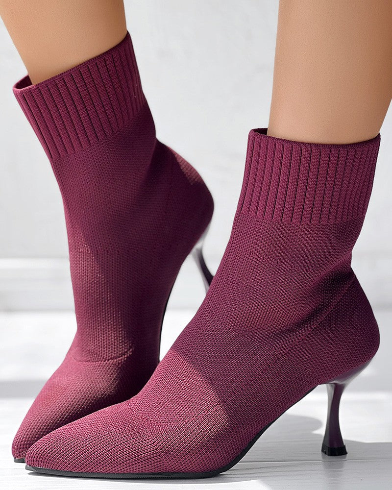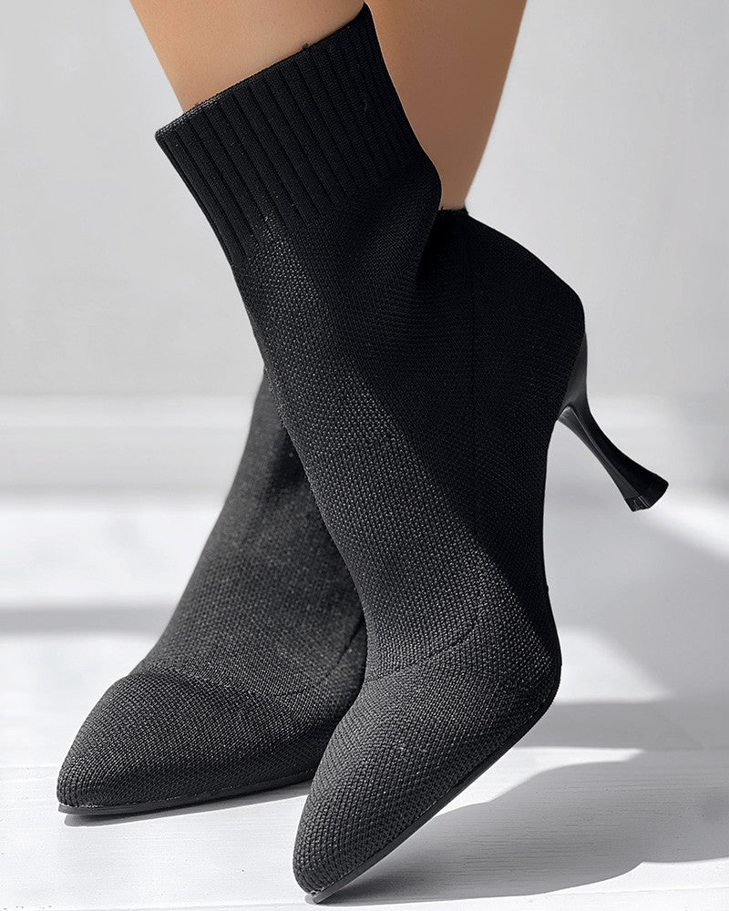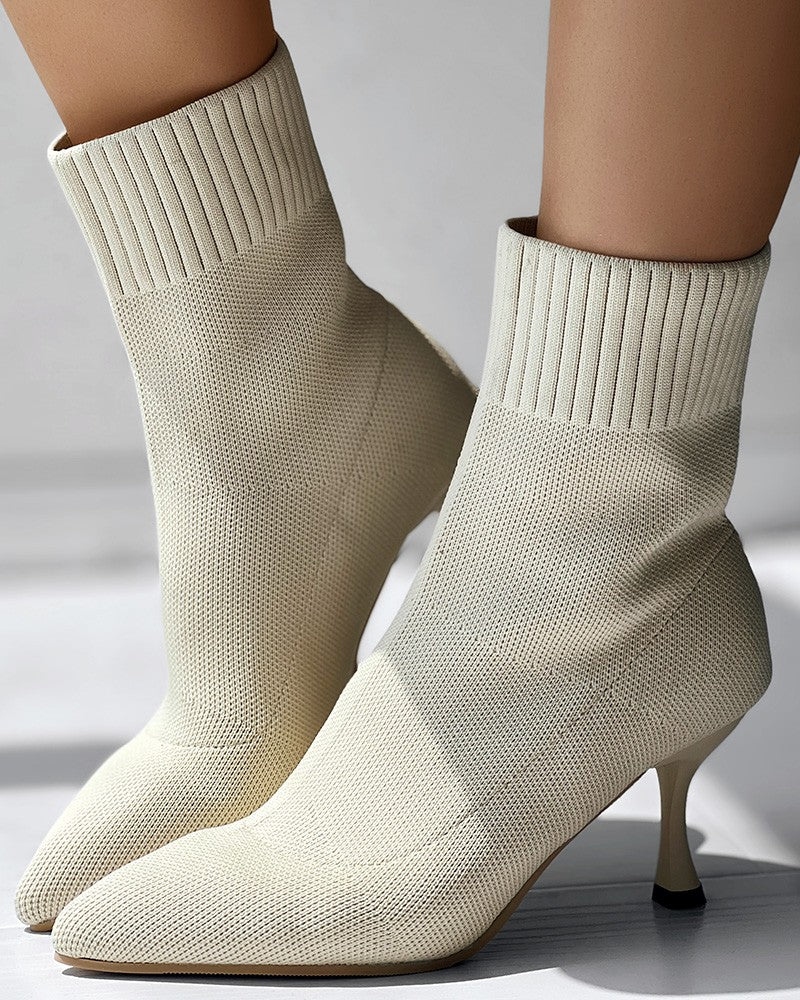 Point Toe Pyramid Heel Knit Ankle Boots
