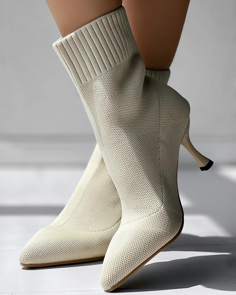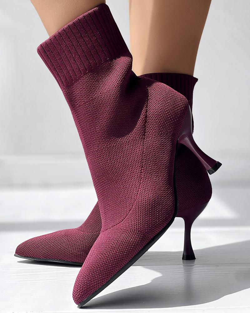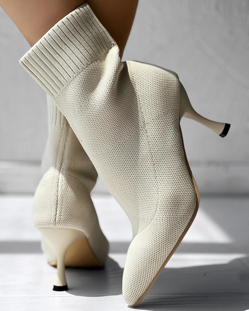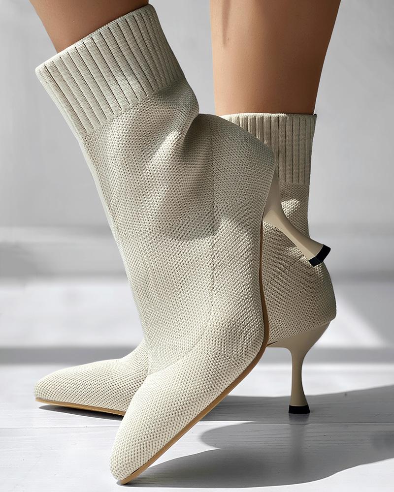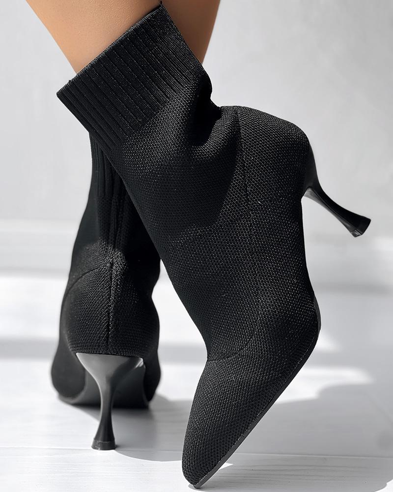 Point Toe Pyramid Heel Knit Ankle Boots