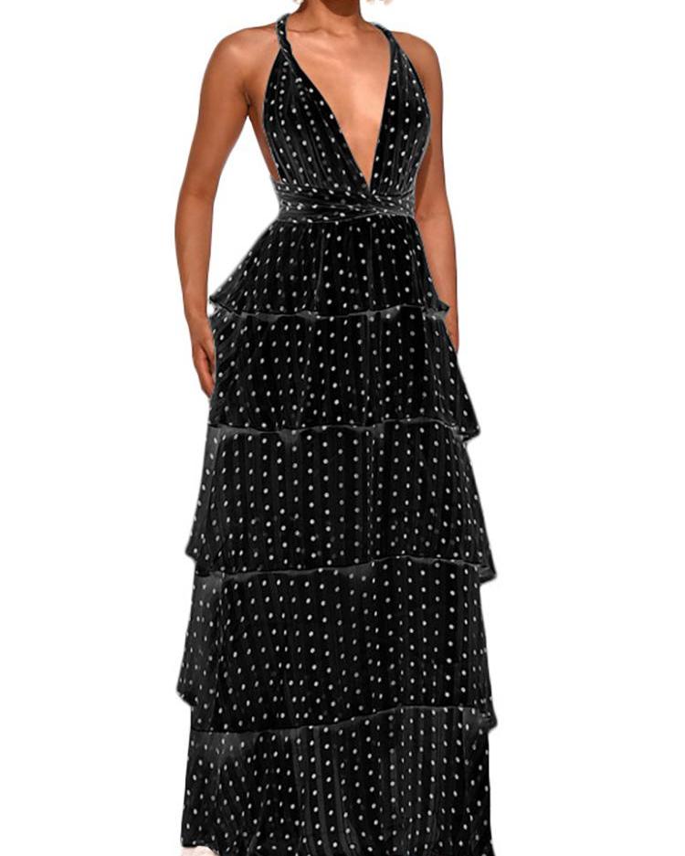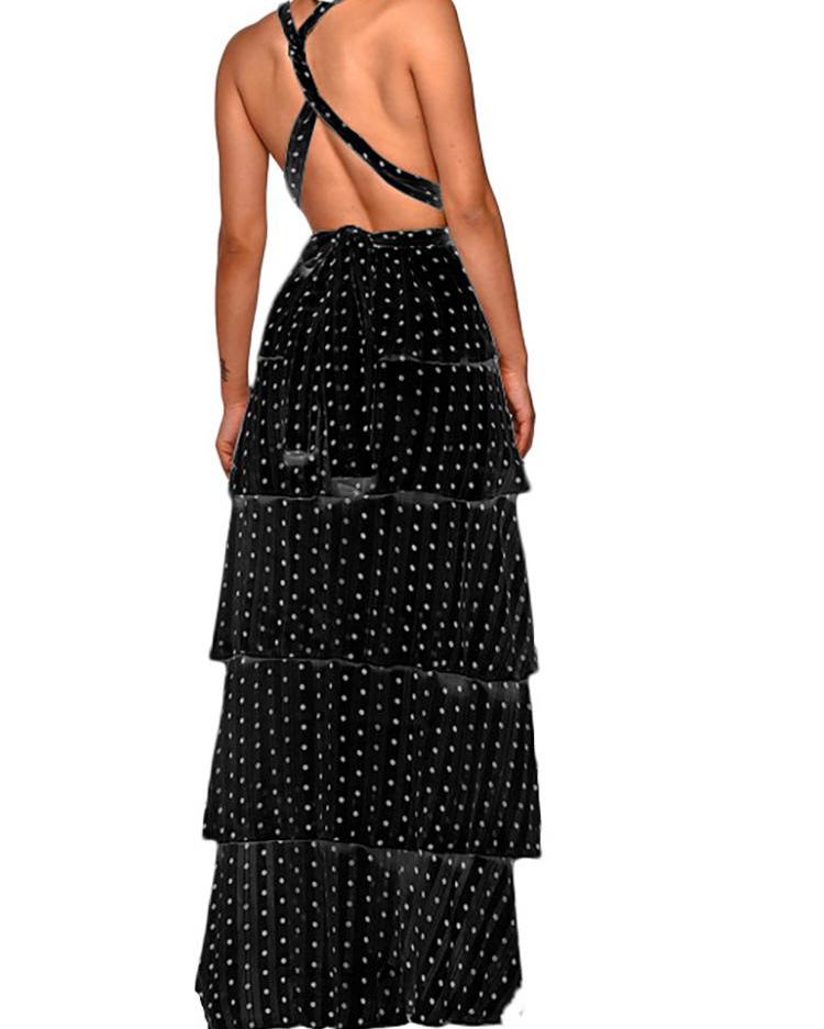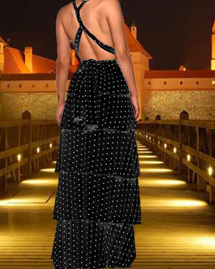 Polka Dots Crisscross Backless Layered Maxi Dress