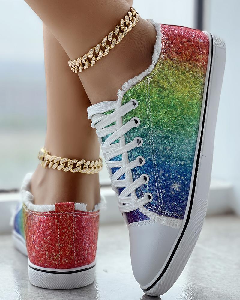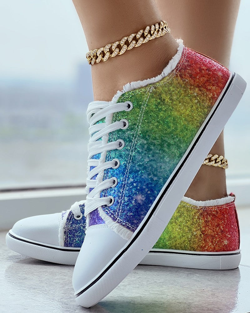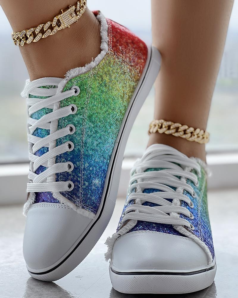 Pride Month Rainbow Ombre Lace up Canvas Sneakers