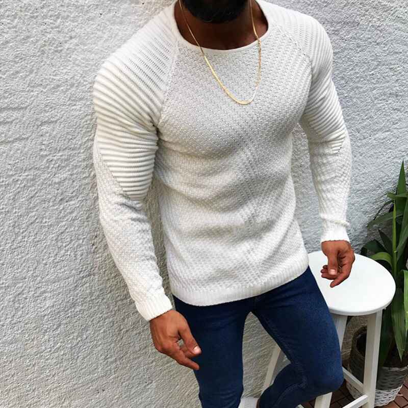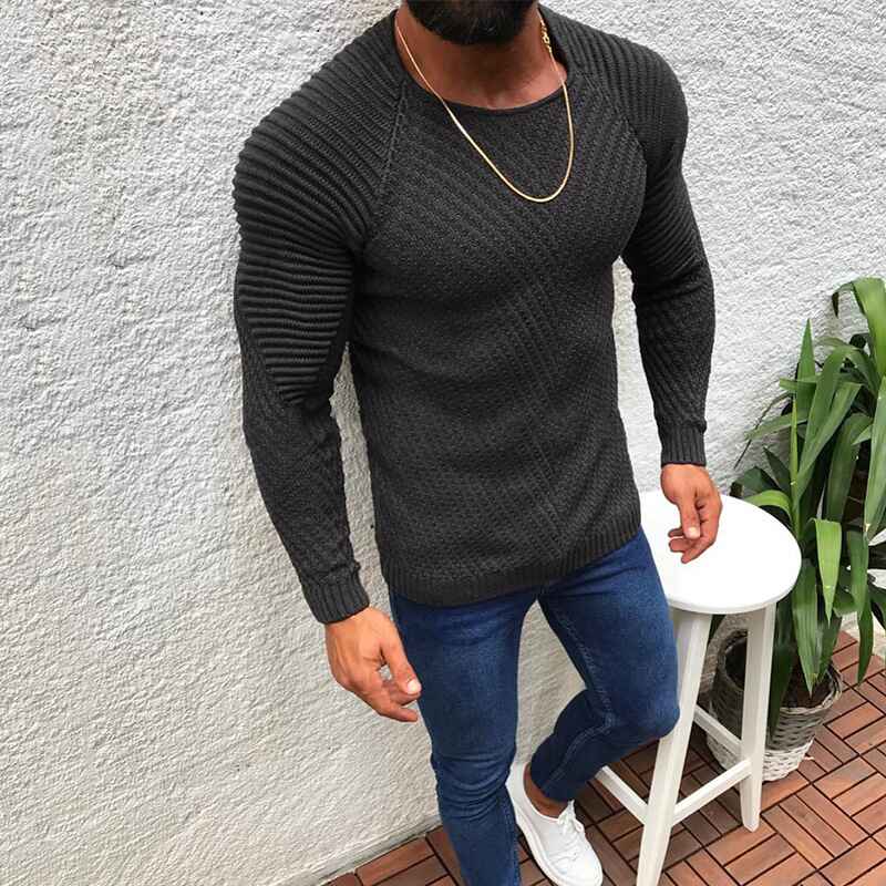 Men's Round Neck Sweater and Pullovers Casual Slim Fit Basic Long Sleeve Knitted Thermal Crew G033