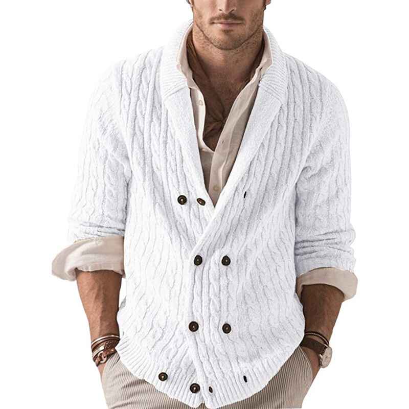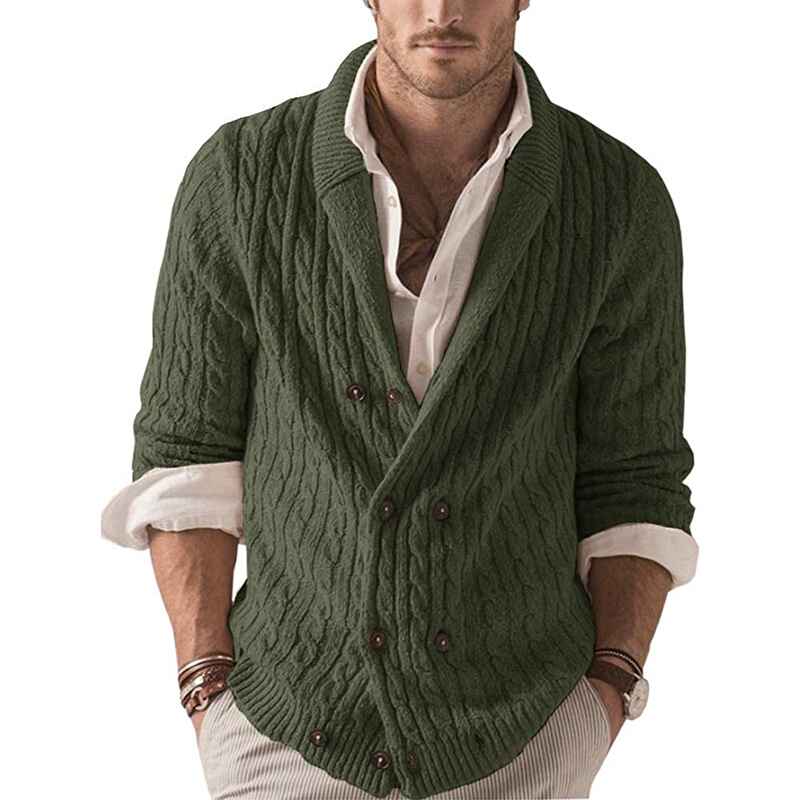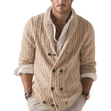 Men's Casual Long Sleeve Shawl Collar Buttons Down Cable Knit Cardigan Sweater G038