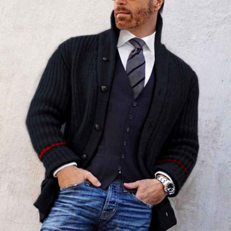 Men's Knitwear Button Down Shawl Collar Cardigan Sweater with Pockets G041