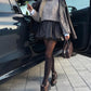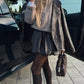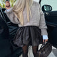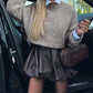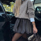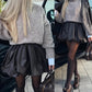 PU High Waist A Line Puff Mini Skirt Casual Skirt