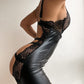 PU Leather Crochet Lace Cutout Babydoll