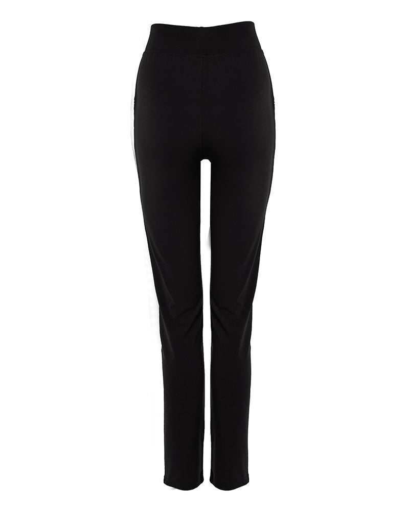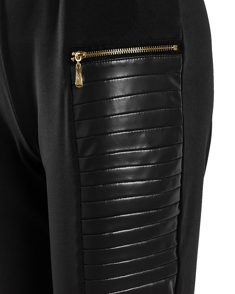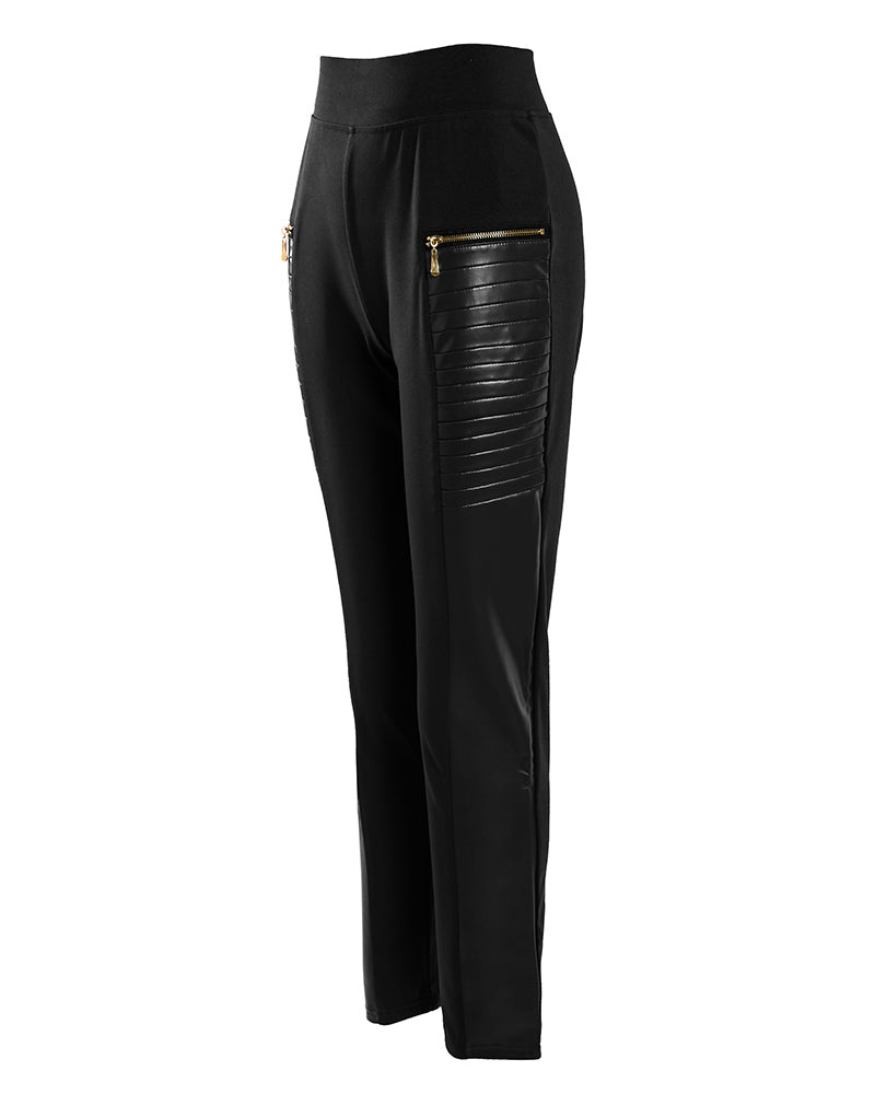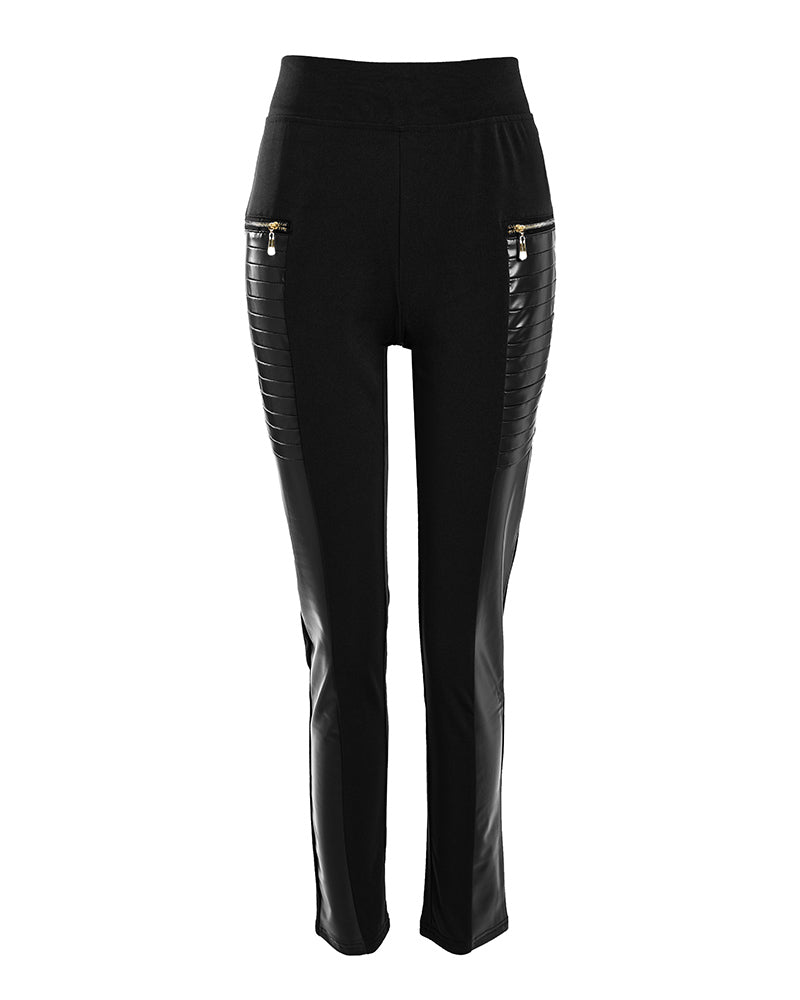 PU Leather Patch Zipper Design High Waist Skinny Pants