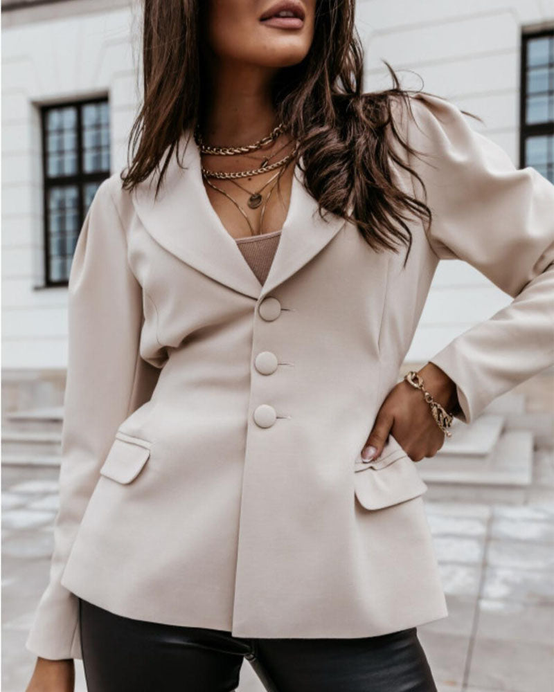 Puff Sleeve Single Breasted Blazer Coat