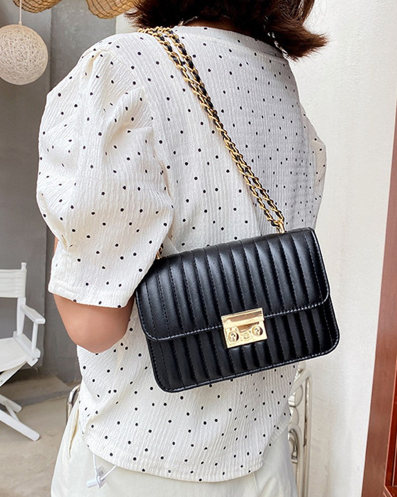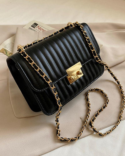 Quilted Lock Chain Strap Flap Shoulder Bag