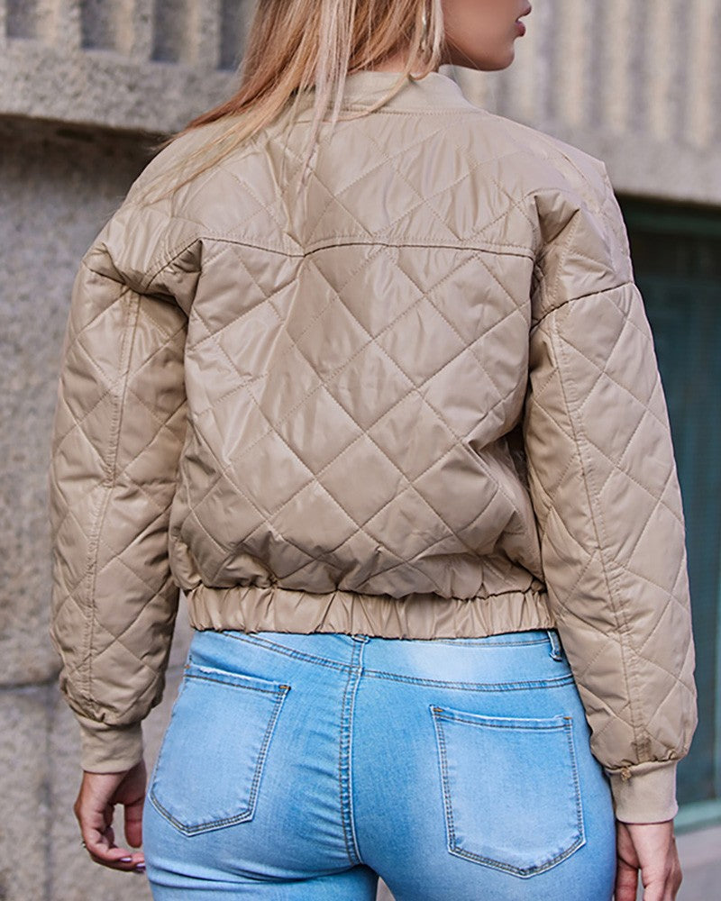 Quilted Long Sleeve Zipper Design Puffer Jacket