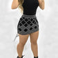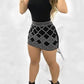 Rhinestone Argyle Pattern Sleeveless Bodycon Dress