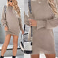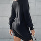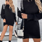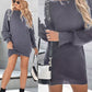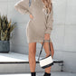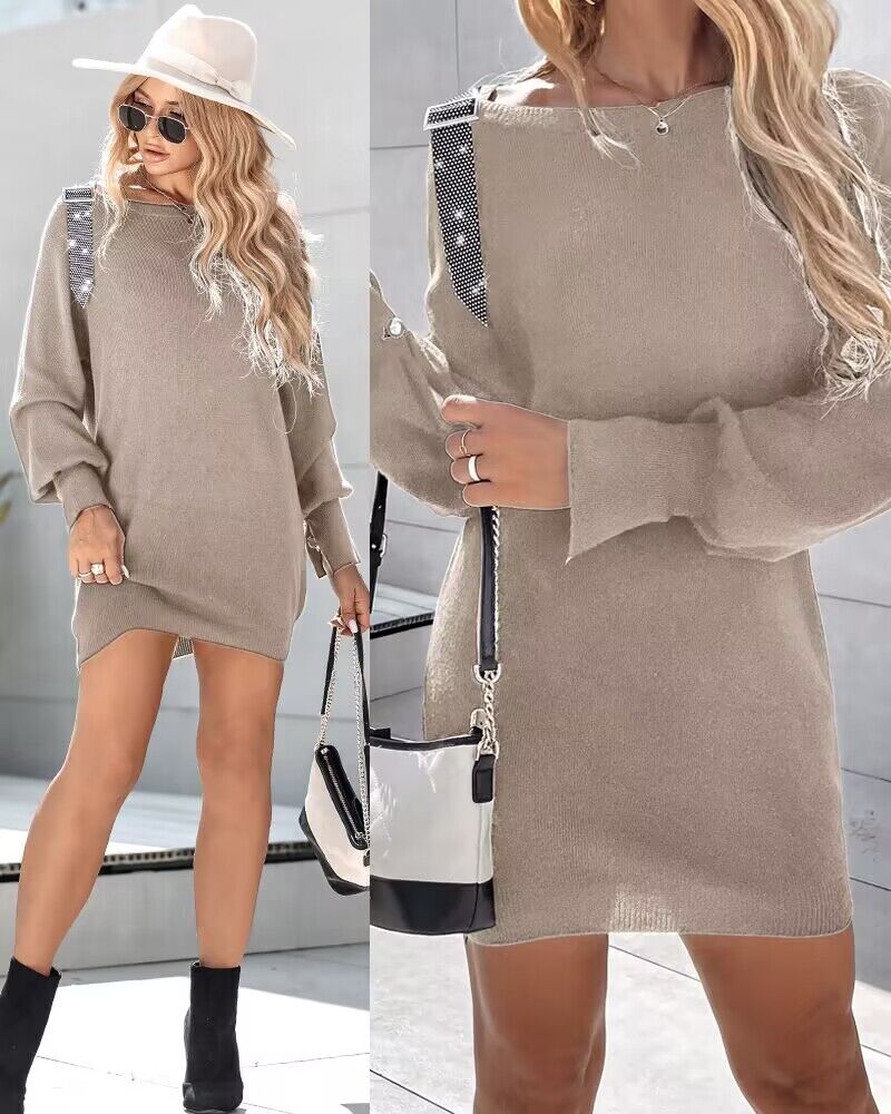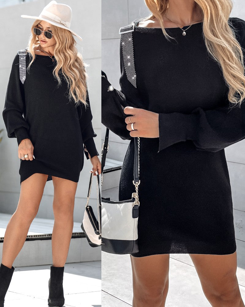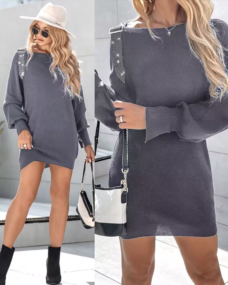 Rhinestone Buckled Batwing Sleeve Casual Knit Long Sleeve Dress