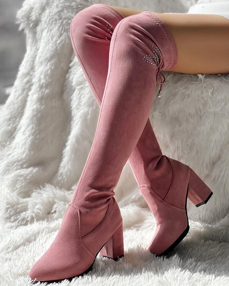 Rhinestone Butterfly Pattern Pearls Decor Boots