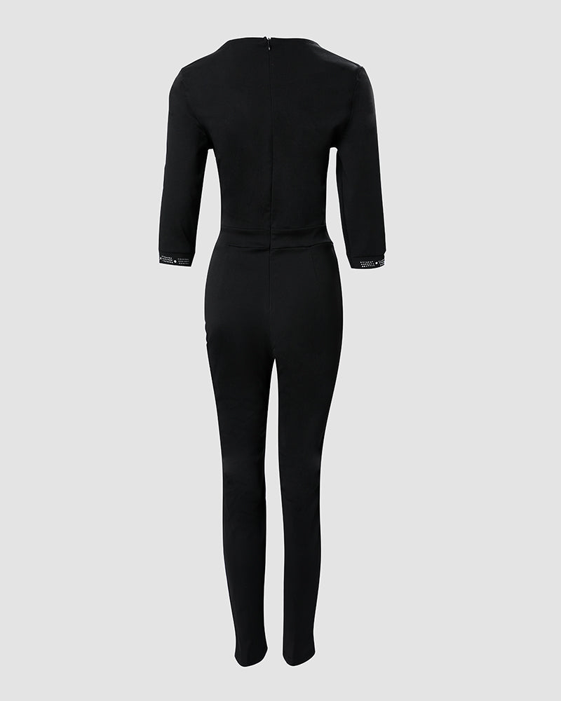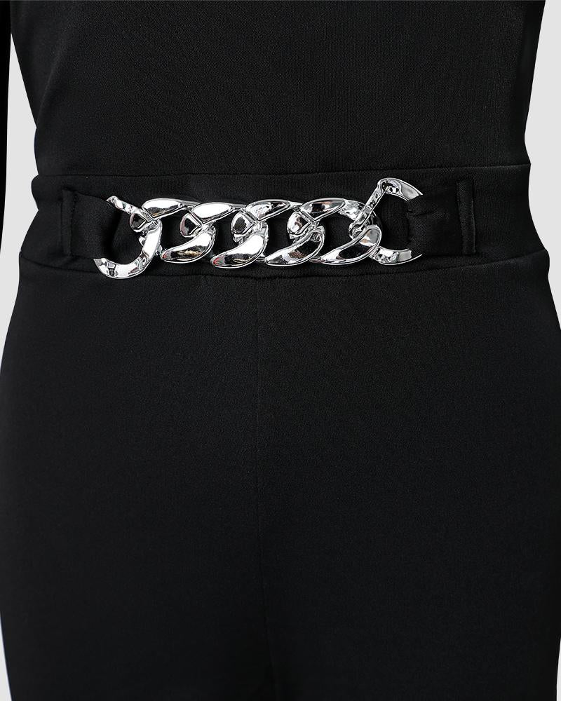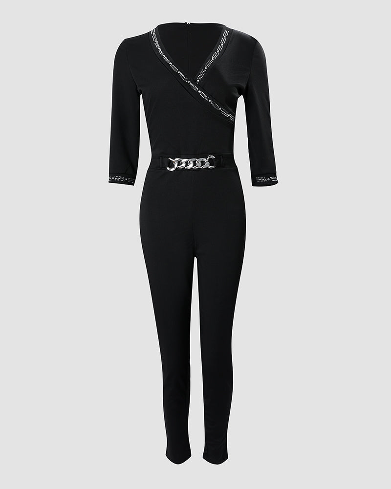 Rhinestone Chain Decor Long Sleeve Jumpsuit