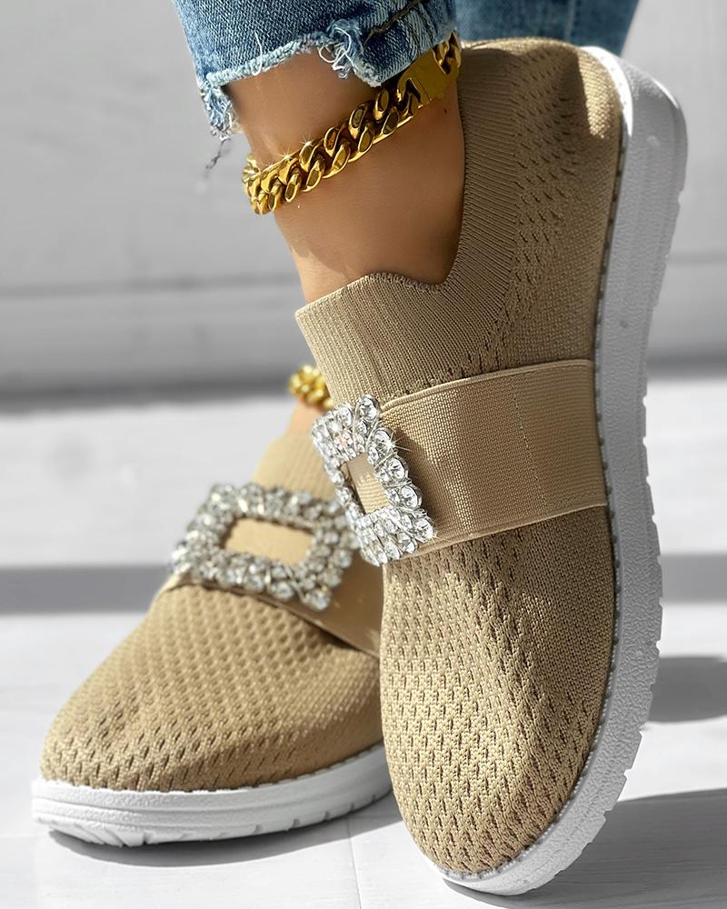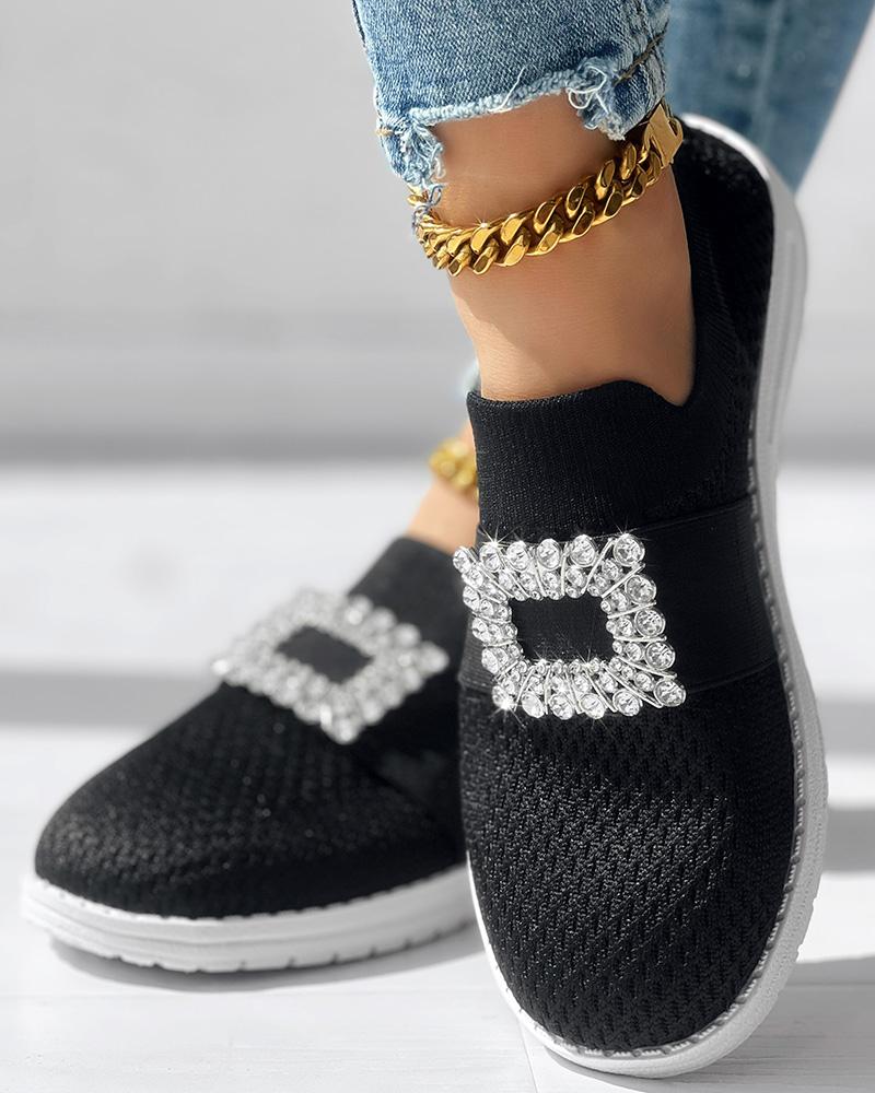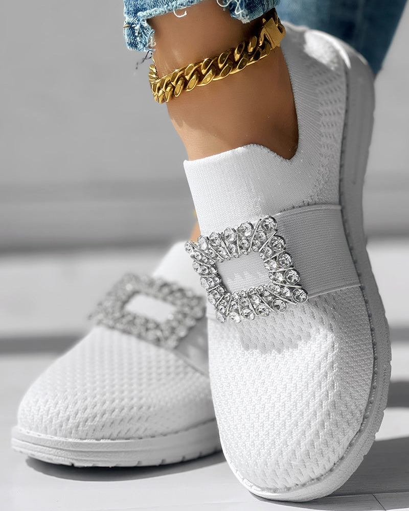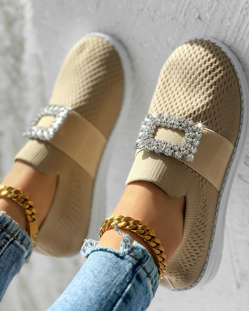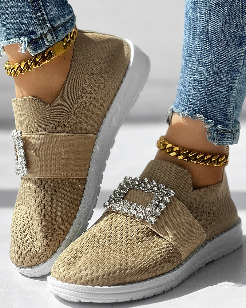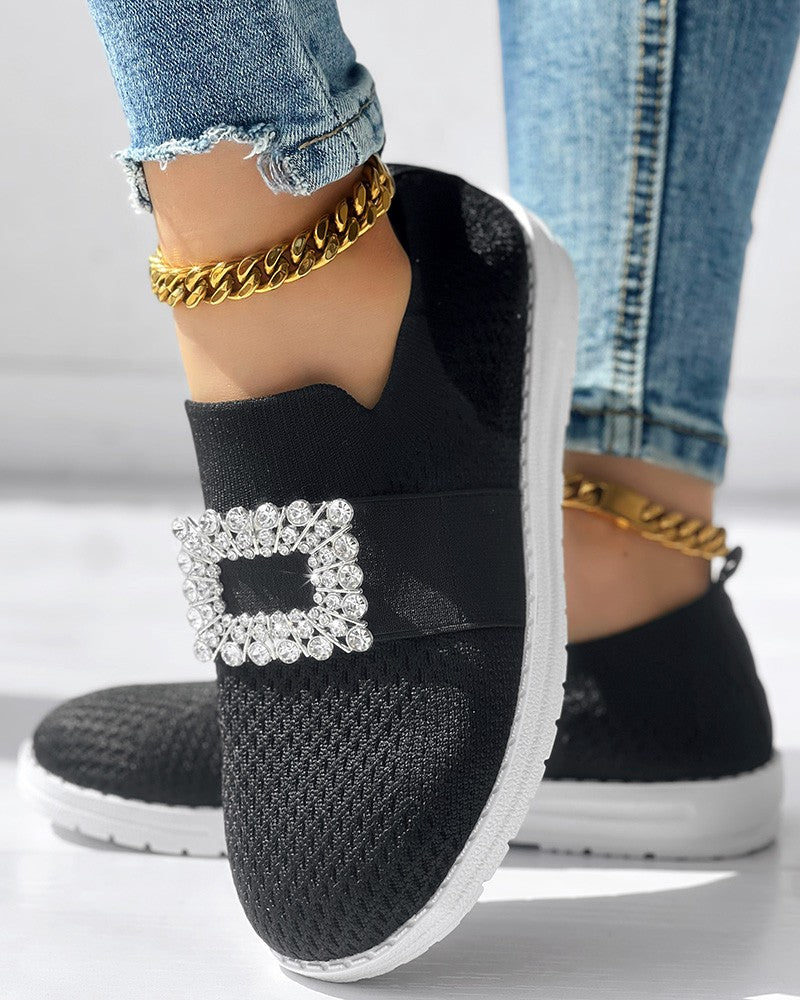 Rhinestone Decor Breathable Casual Slip On