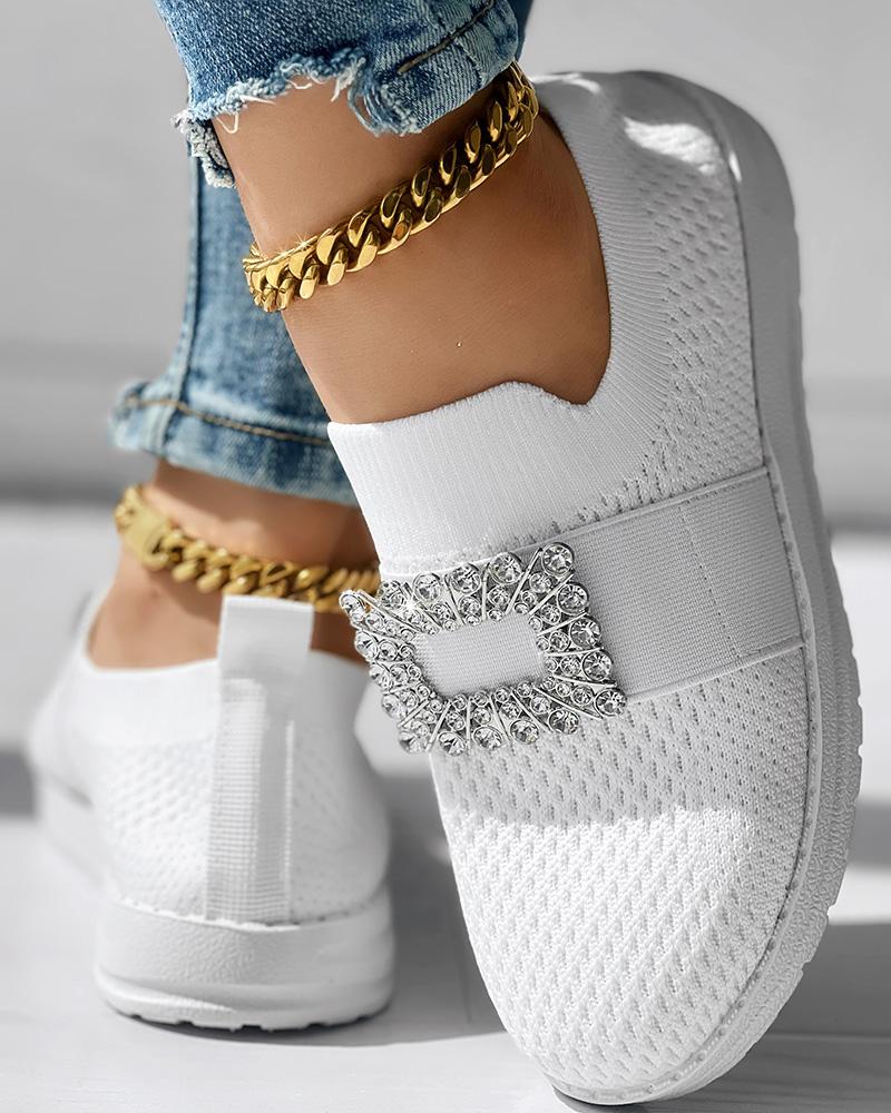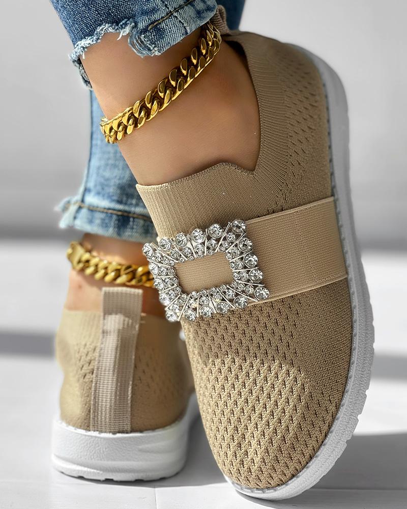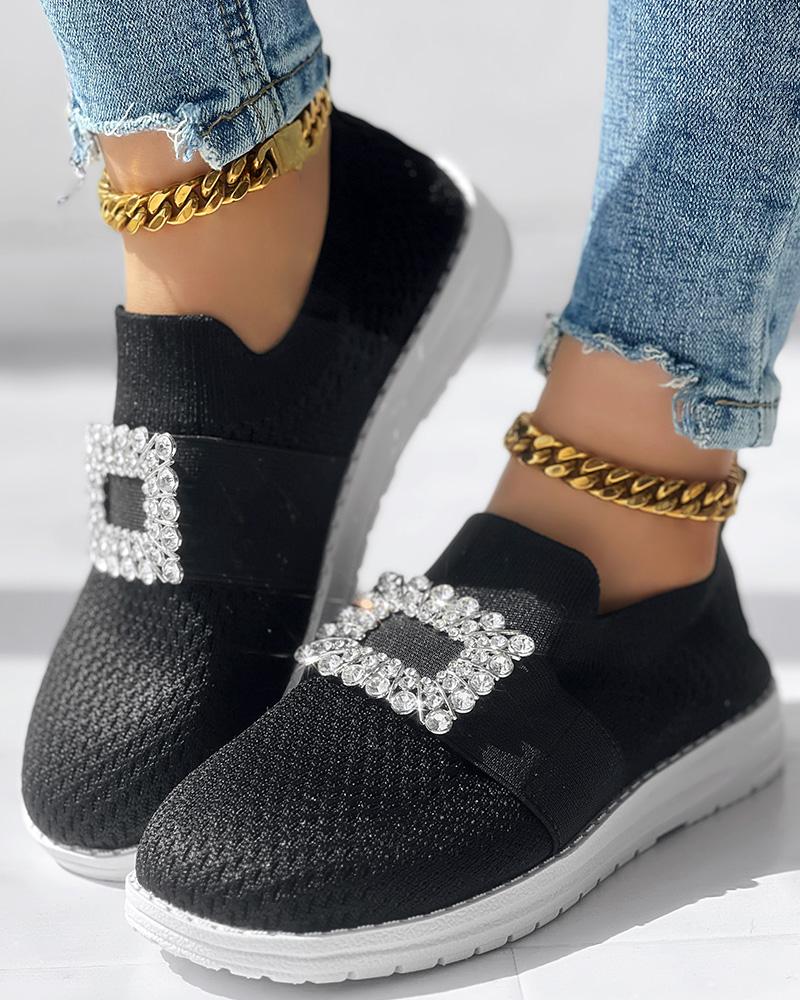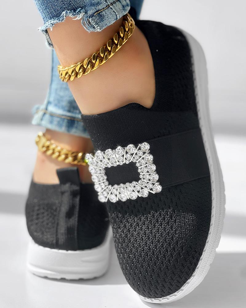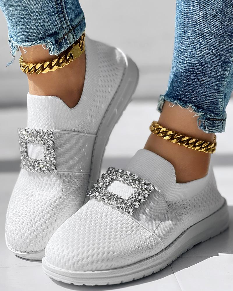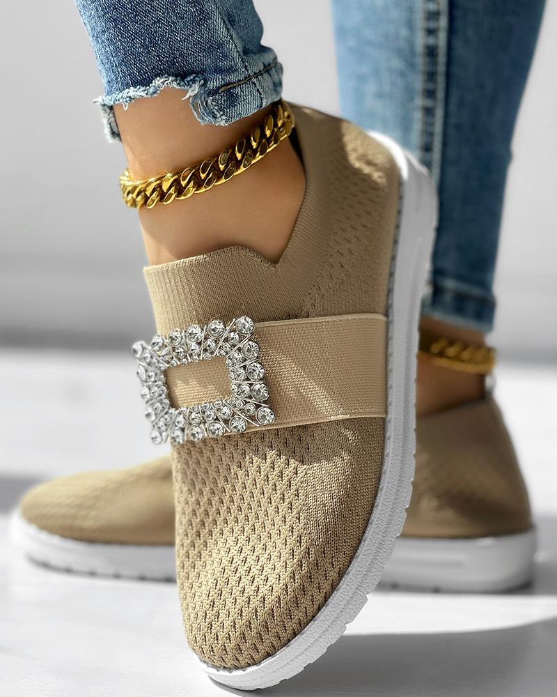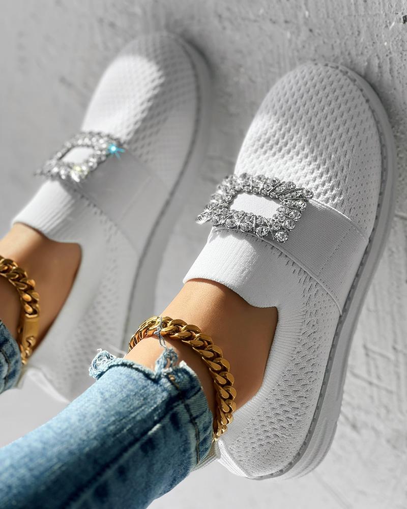Rhinestone Decor Breathable Casual Slip On