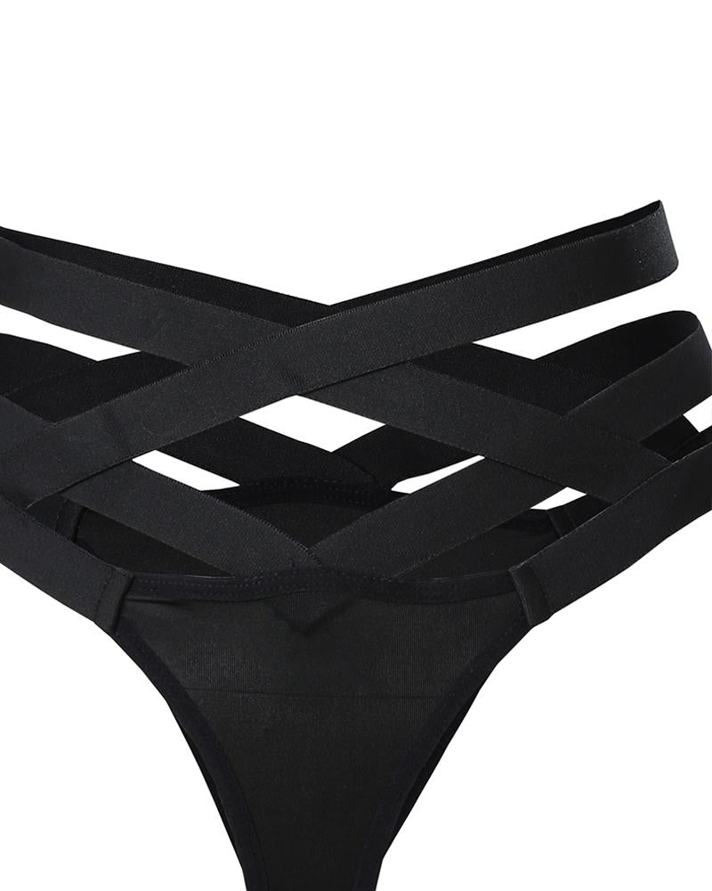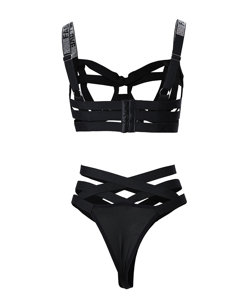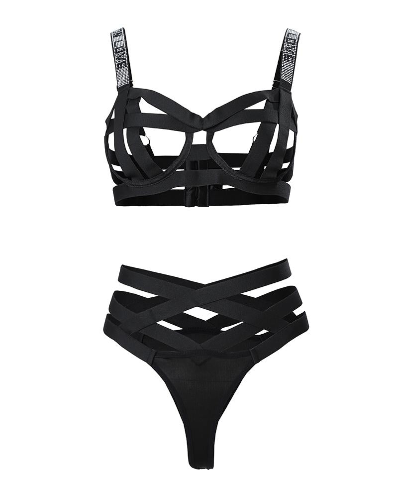 Rhinestone Decor Crisscross Cutout Lingerie Set