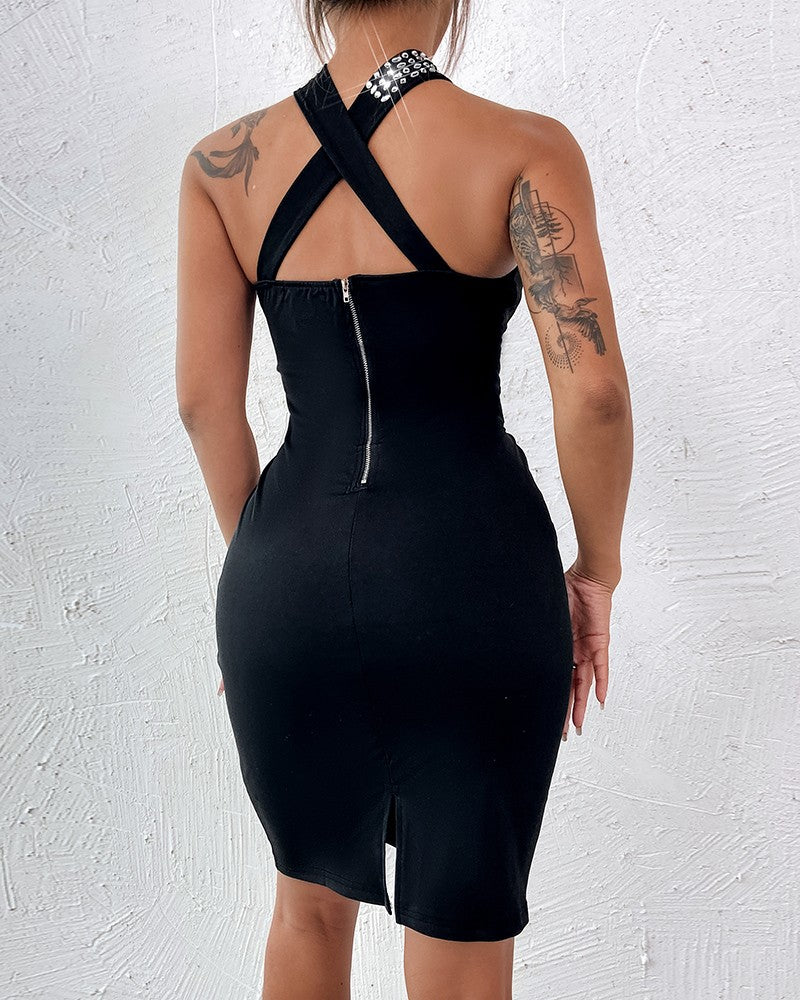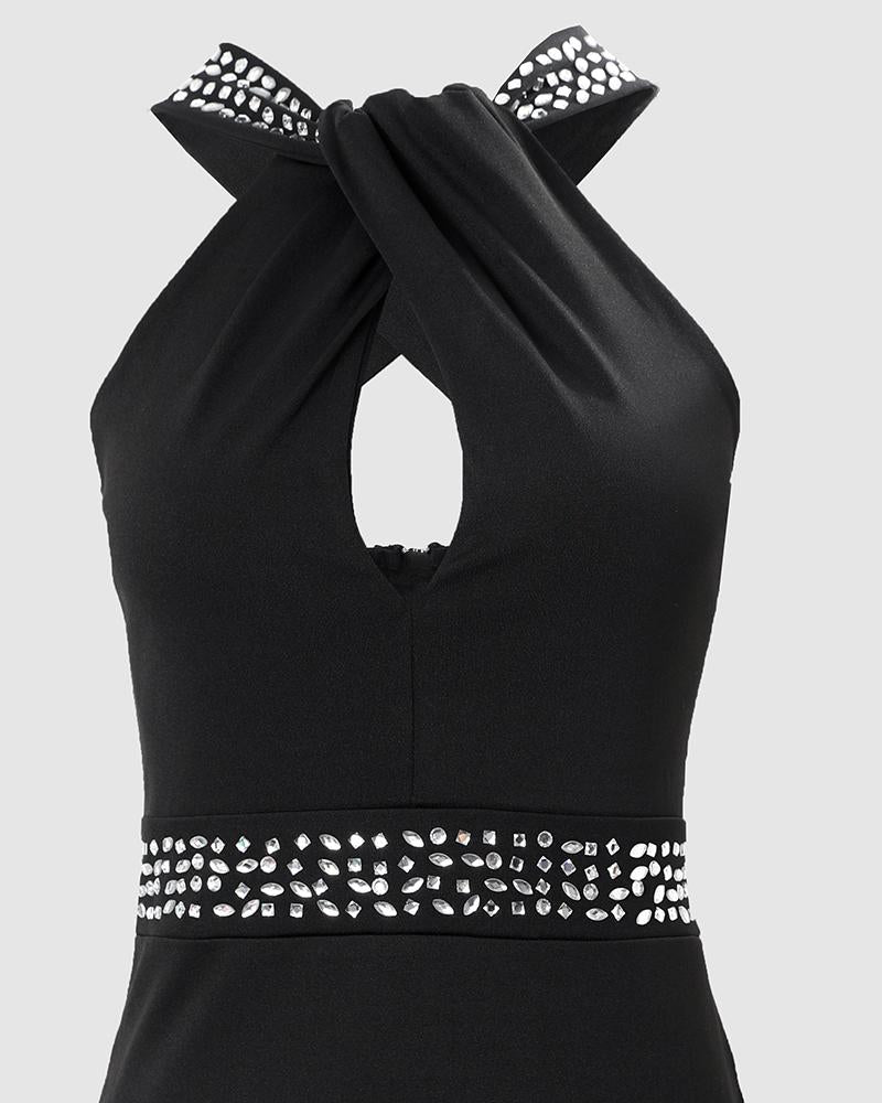 Rhinestone Decor Sleeveless Slit Party Dress