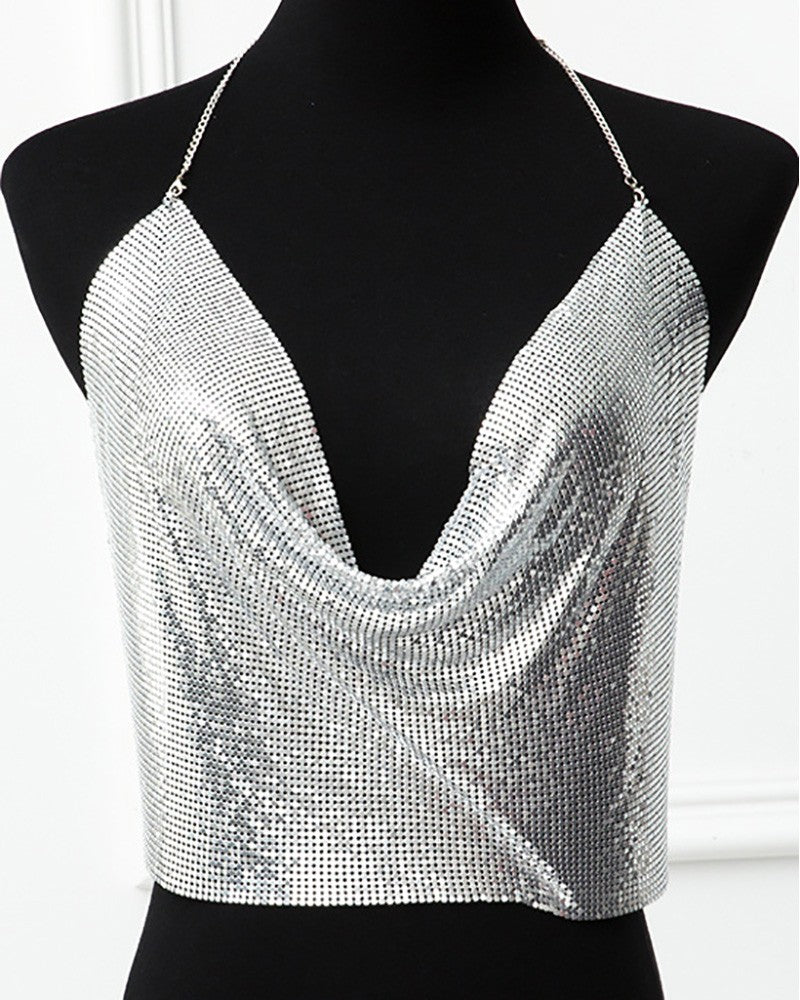 Rhinestone Halter Sleeveless Crop Top