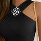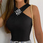 Rhinestone Halter Sleeveless Slim Fit Tank Ruched Casual Top